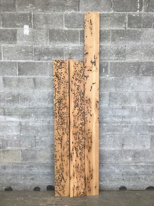 Locally milled & kiln dried. Mostly Fir and Hemlock, sometimes a few Spruce come in. These have amazing bore channels that come from the notorious teredo clam. These saltwater clams spend their entire lifespan in these logs creating their tunnels, that rarely intersect. The raw stock logs (before milling) originally used as boom surrounds in antiquated timber transport. These logs used to be left to rot in coastal towns before our supplier took it upon himself to repurpose them. Very unique stock, teeming in NW history. Very popular as decorative siding. The number of bore channels varies from board to board, depending on what your project demands. Sorry, no holds on this material.
