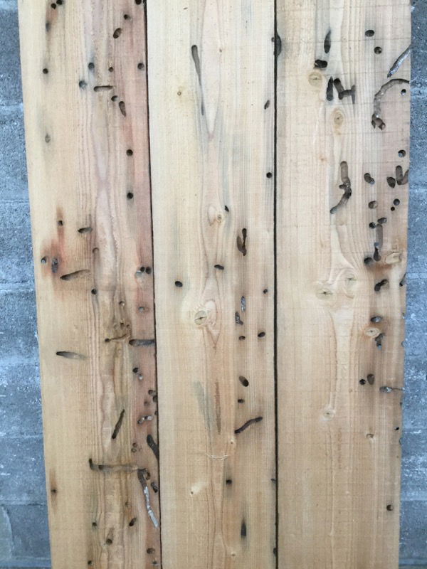 Locally milled & kiln dried. Mostly Fir and Hemlock, sometimes a few Spruce come in. These have amazing bore channels that come from the notorious teredo clam. These saltwater clams spend their entire lifespan in these logs creating their tunnels, that rarely intersect. The raw stock logs (before milling) originally used as boom surrounds in antiquated timber transport. These logs used to be left to rot in coastal towns before our supplier took it upon himself to repurpose them. Very unique stock, teeming in NW history. Very popular as decorative siding. The number of bore channels varies from board to board, depending on what your project demands. Sorry, no holds on this material.