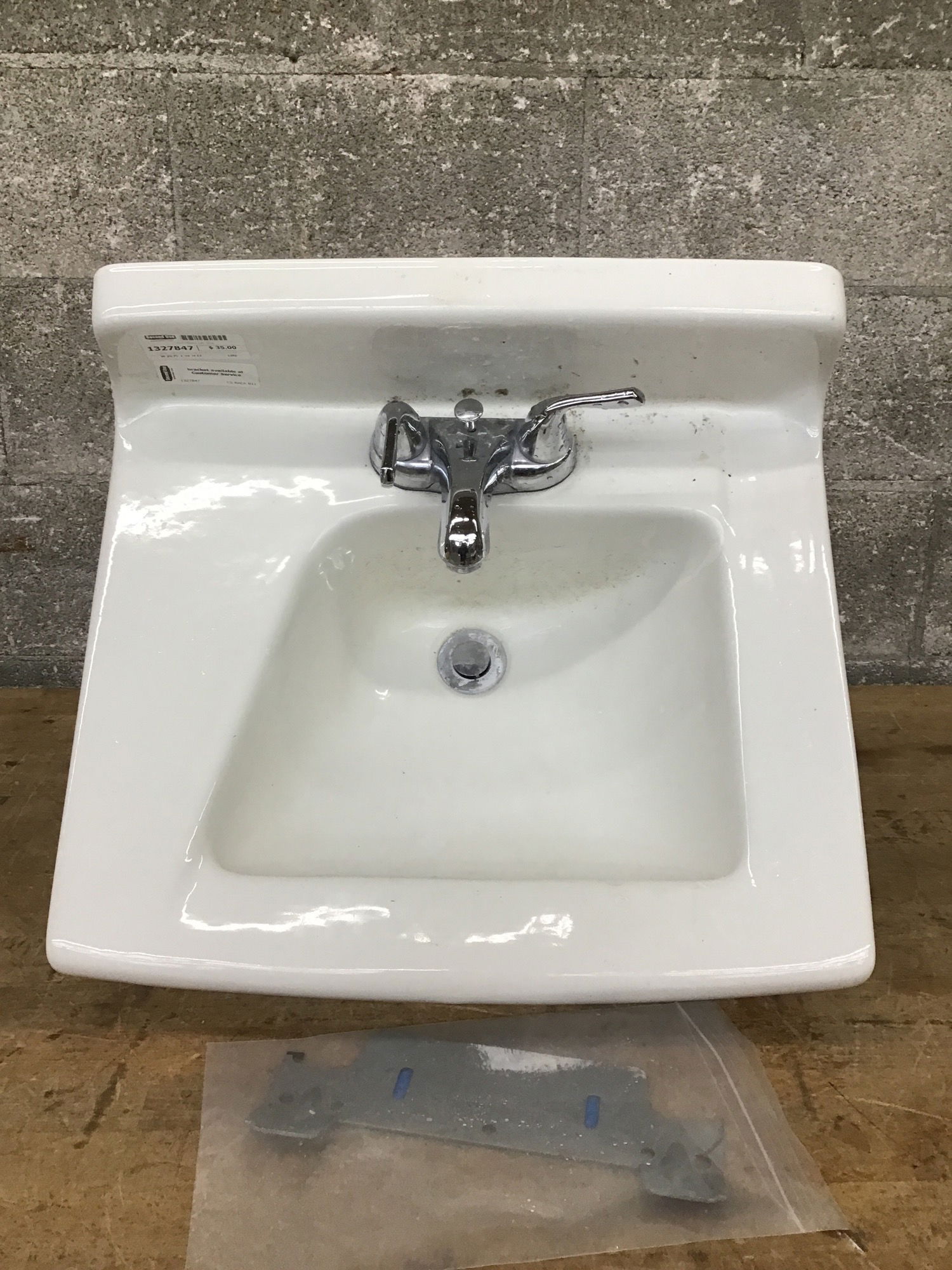 A classic (one might even say standard) wall-mounted sink with its bracket, ready and raring to go!