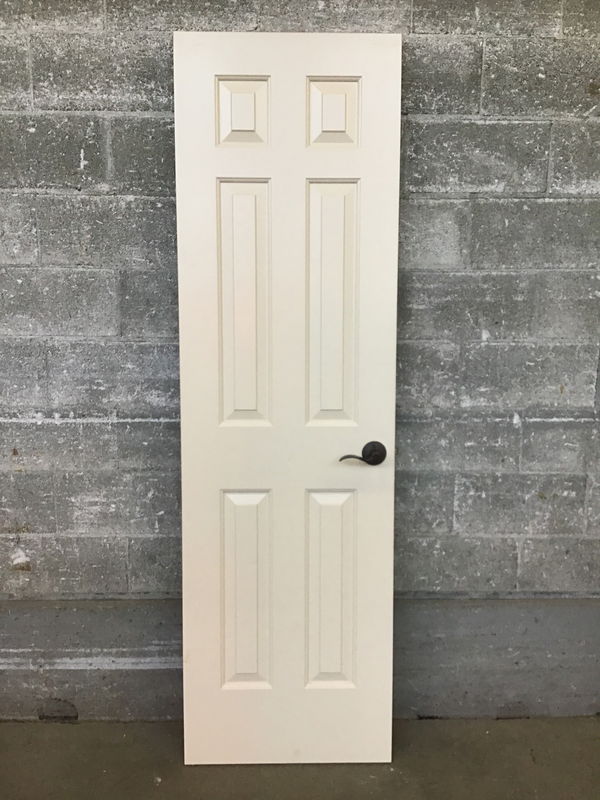 Narrow faux-panelled hollow core interior door with oiled bronze hardware.