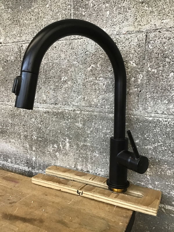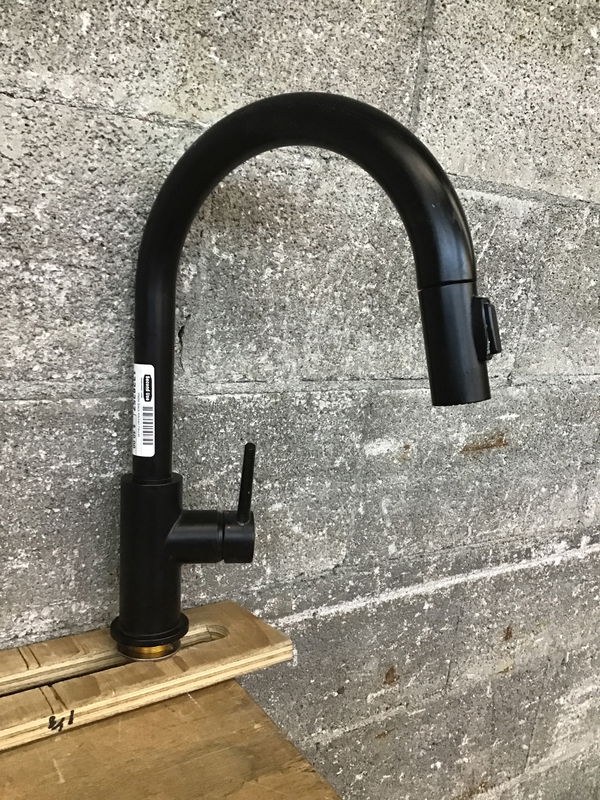 It could use a little cleaning, but this modern matte black kitchen faucet is in otherwise great shape.