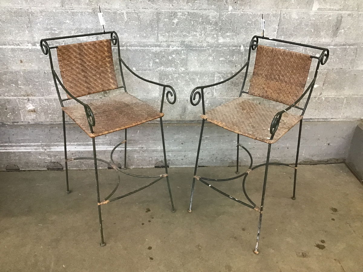 This is a pair of steel framed patio chairs with wicker seat and back. Simple yet elegant!