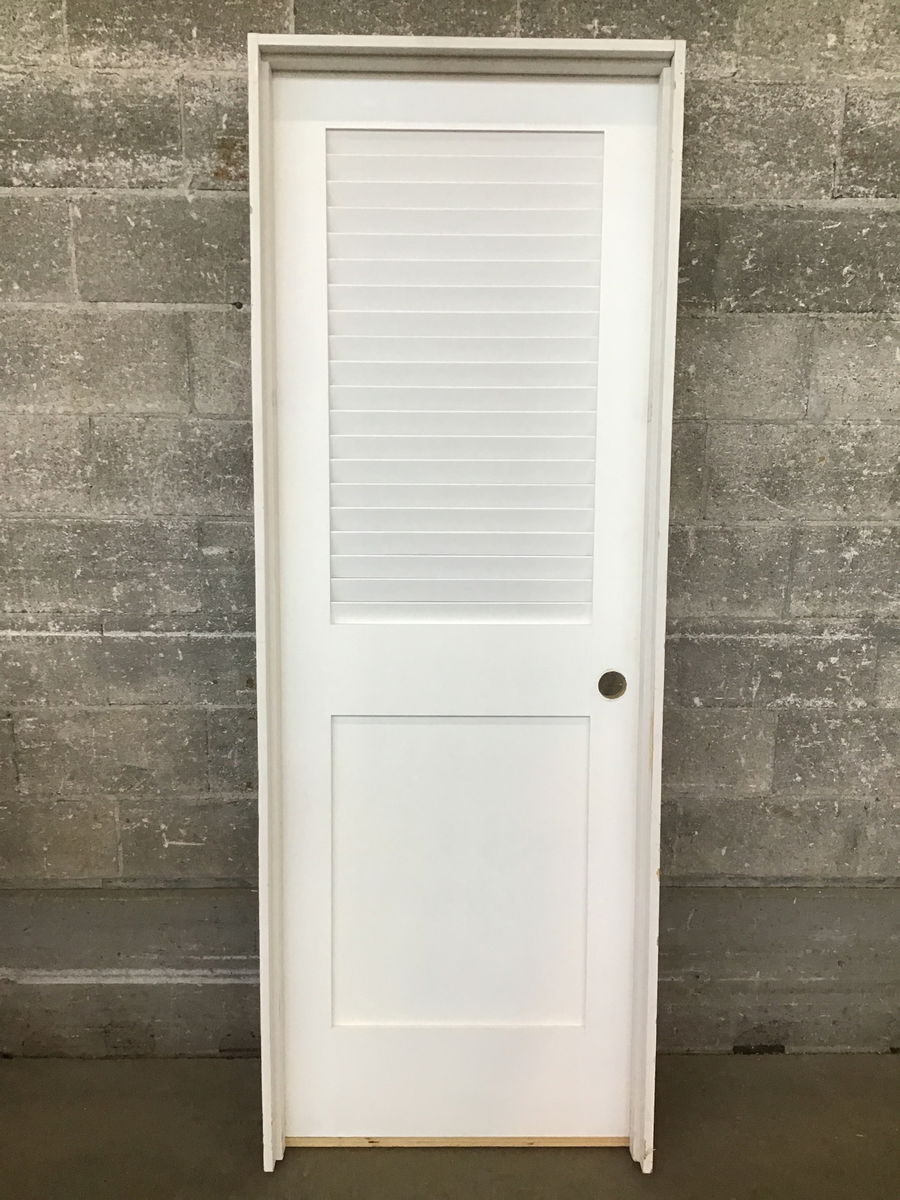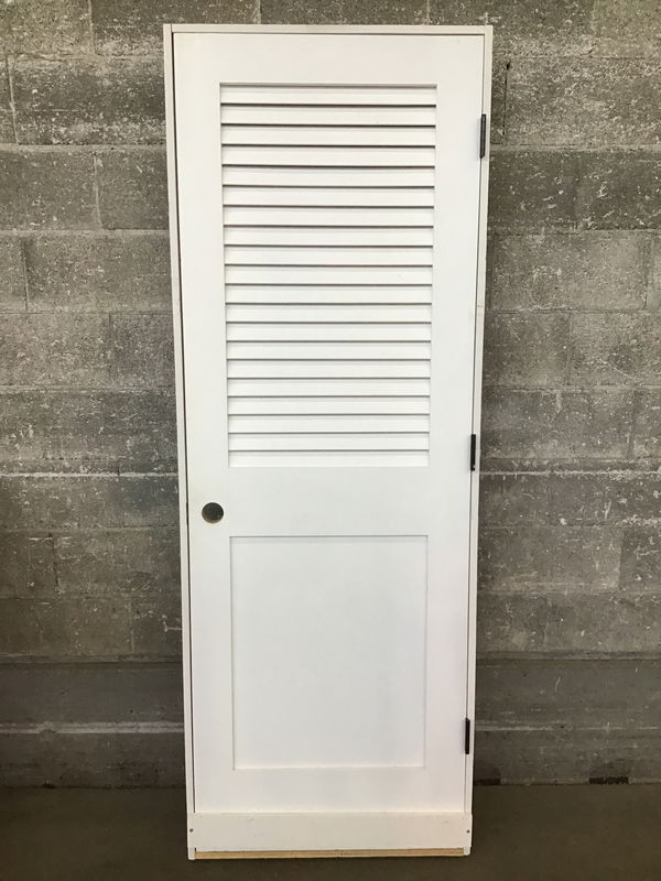 An in jamb louvered interior door with a crisp white painted finish. This would make for a good closet or laundry room door.