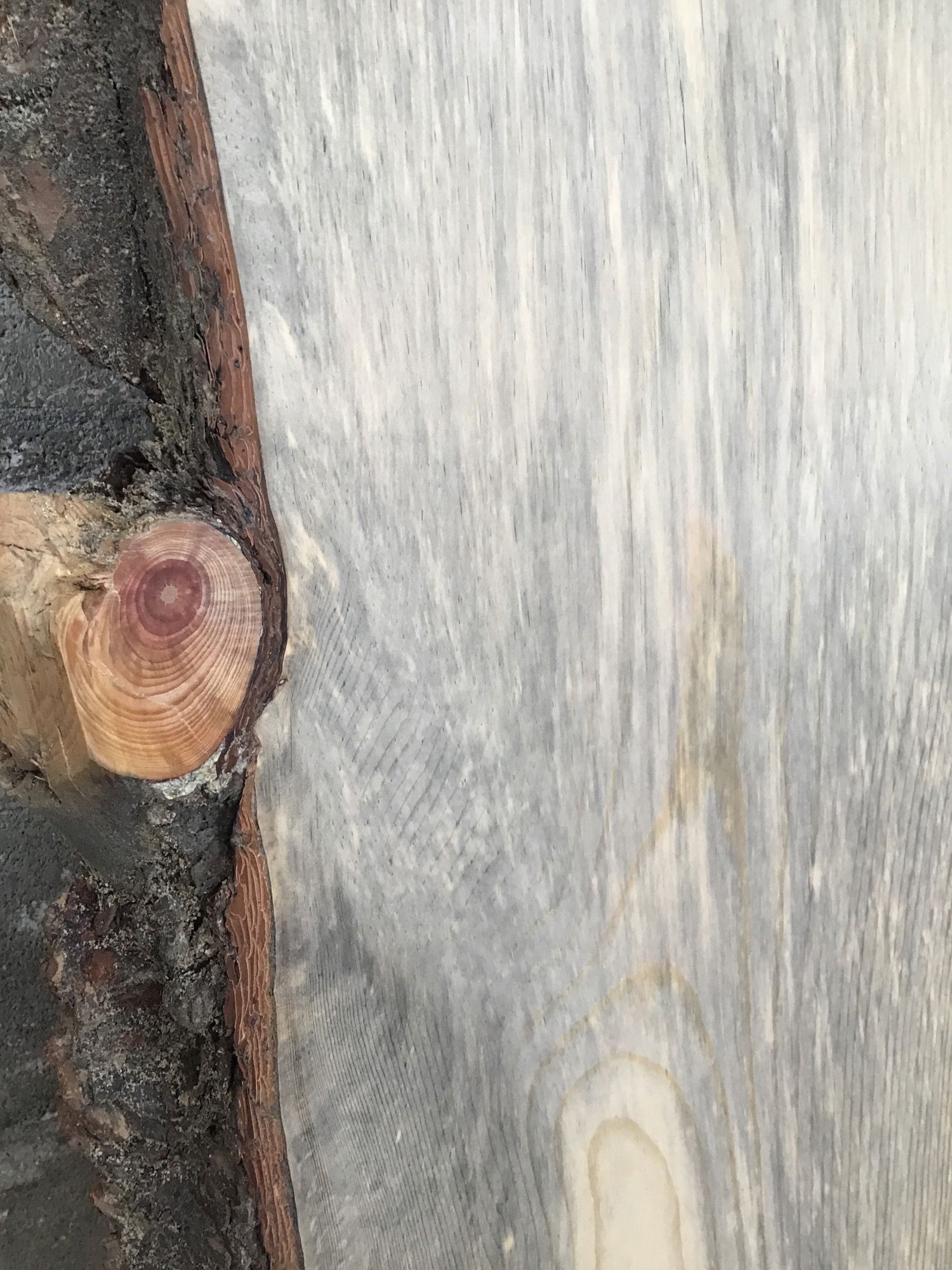 Sanded to 220 grit on one face. Locally milled and kiln dried from reclaimed untreated pine pilings from a Lake Washington dock. The logs were pilings holding up a dock installed in 1950s. They were preserved in freshwater for 70 years causing this beautifully distinct natural blue/black stain from the clay they were sunk in.