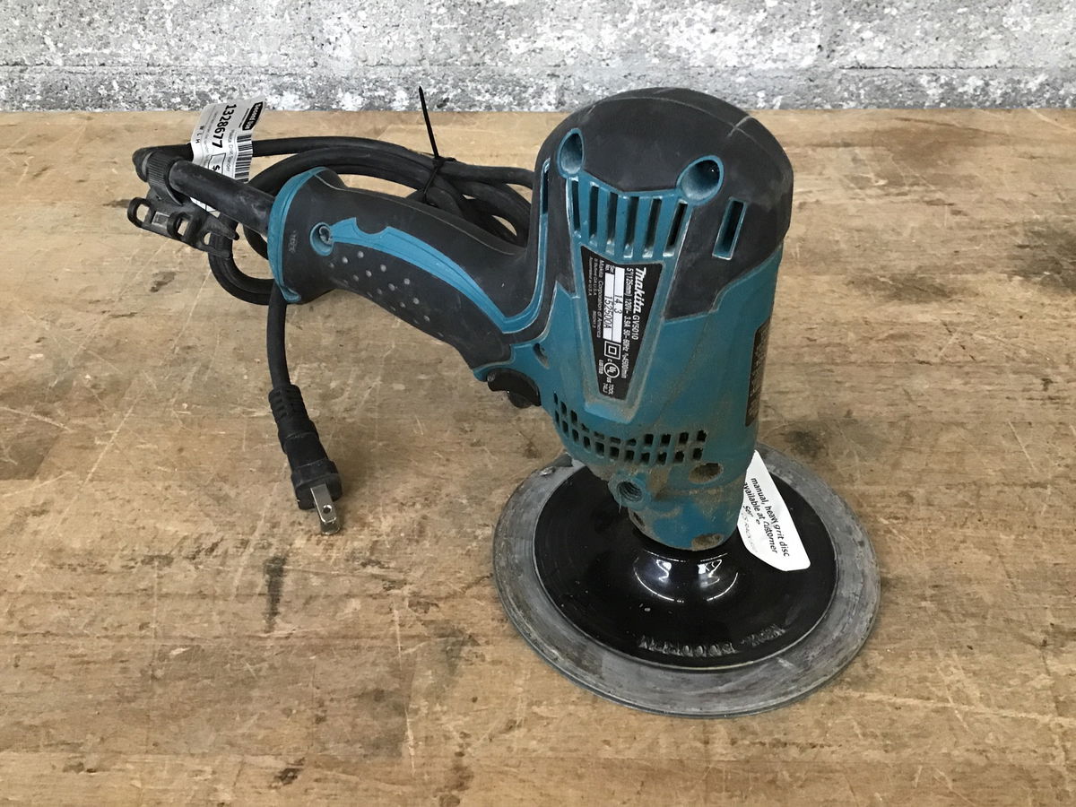 Hand held corded disc sander by Makita. Includes original manual and some extra 36 grid sanding pads. This item was tested in our receiving department and appears functional.