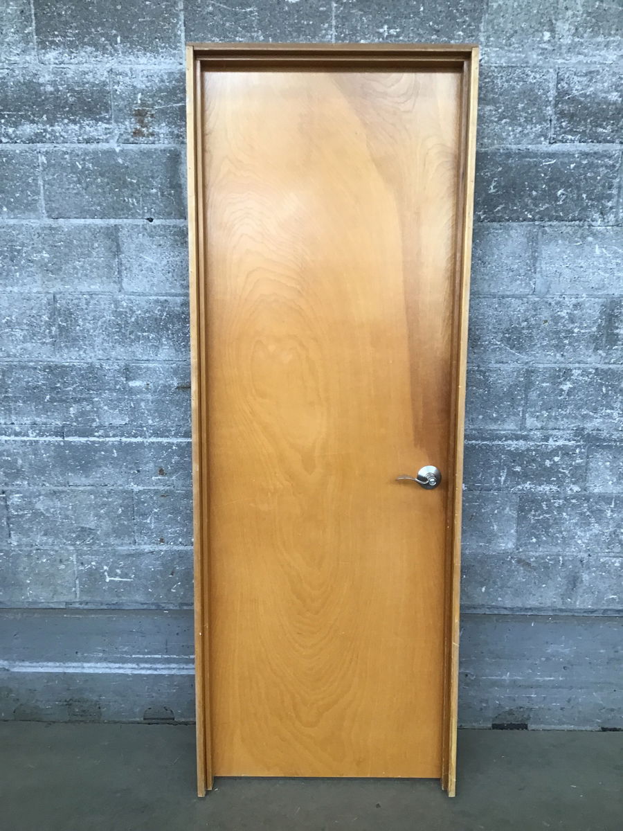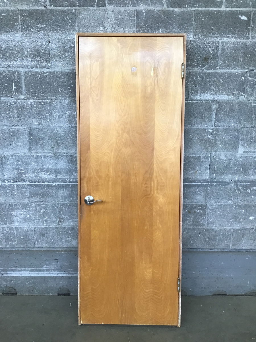 28" Birch Hollow Core Door with a well taken care of veneer finish. Classic midcentury door. Has modern knobset and fir jamb.