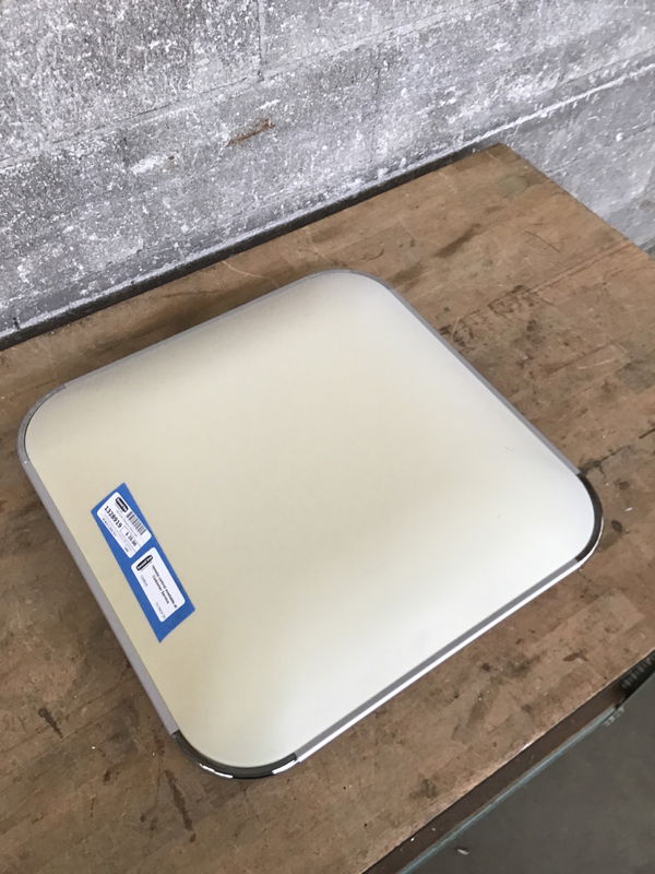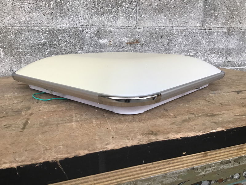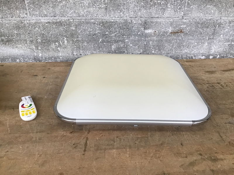 An LED ceiling light by Tycolit (model XD-048), sporting an array of LEDs behind the diffuser, all of which can be programmed to change color, brightness, and intensity.