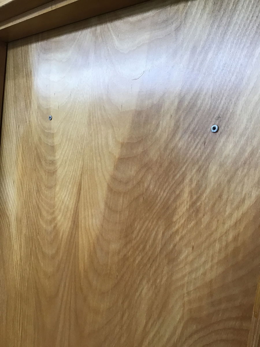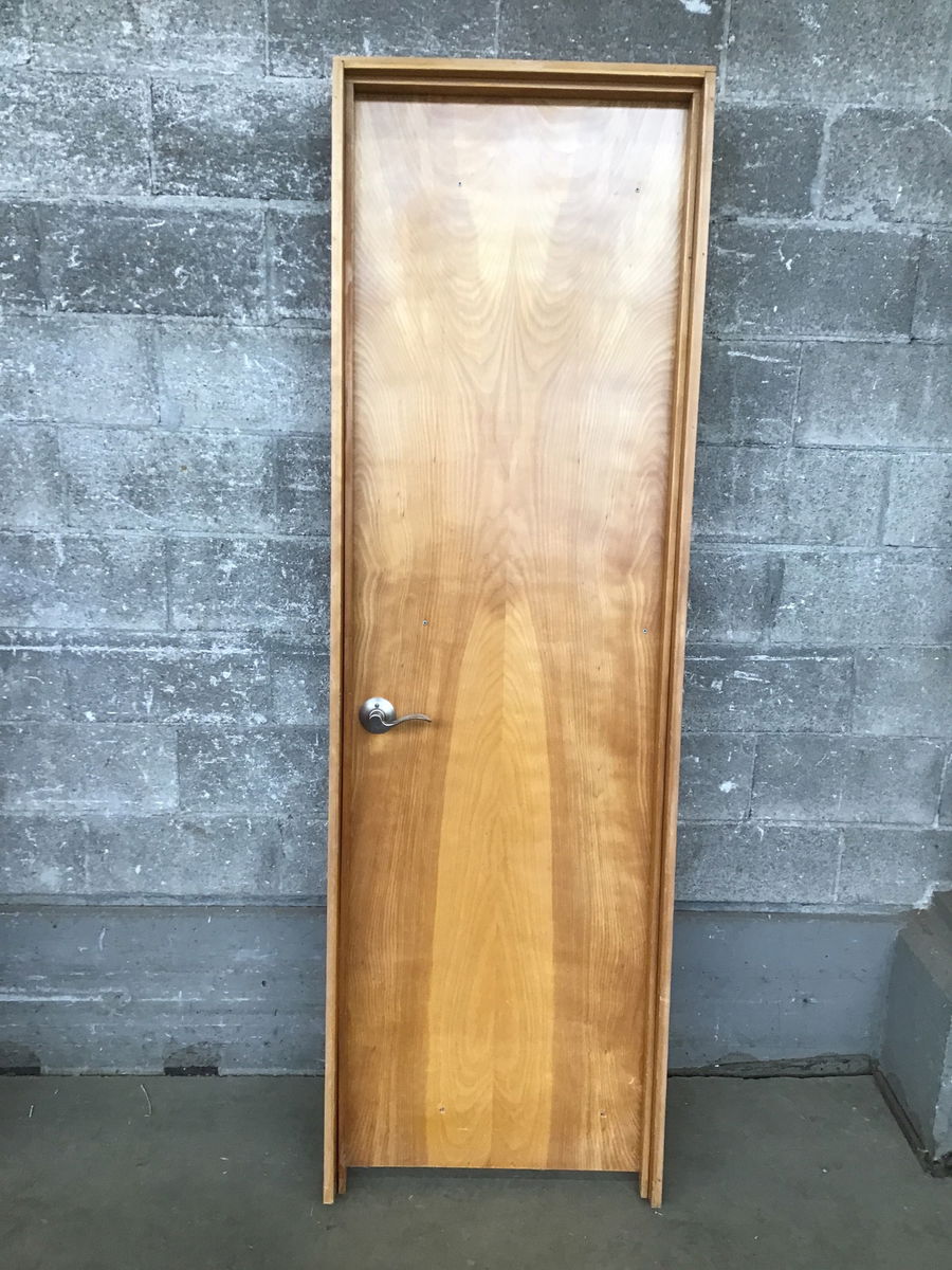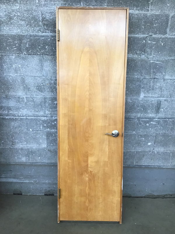 This one has two pairs of screw holes on one face. See second photo. Price reflects. 24" Birch Hollow Core Door with a well taken care of veneer finish. Classic midcentury door. Has modern knobset and fir jamb.