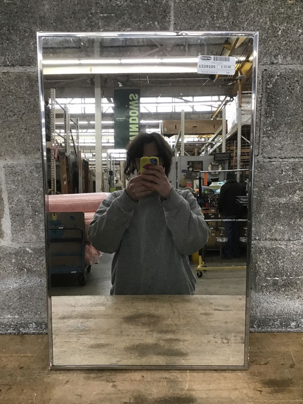 There a chrome frame around the mirror of this metal box built in medicine cabinet. Comes with three adjustable glass shelves and the clips to mount them.