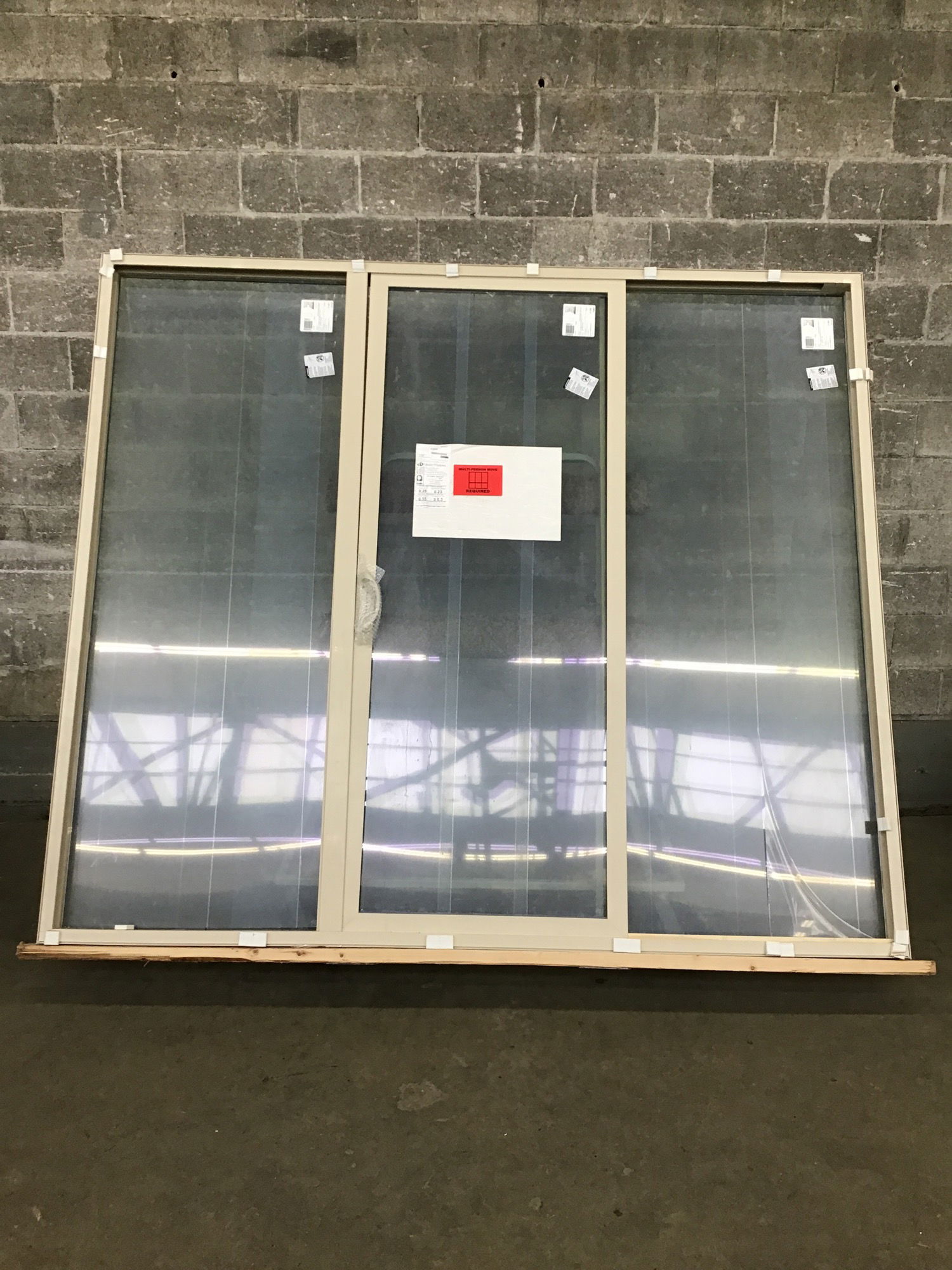 Ca. 2024 Beige OXO vinyl sliding door made by VPI. This has never been installed and still has its energy tag attached. Width and Height listed reflect the frame, not the door itself. Photo may be representational.