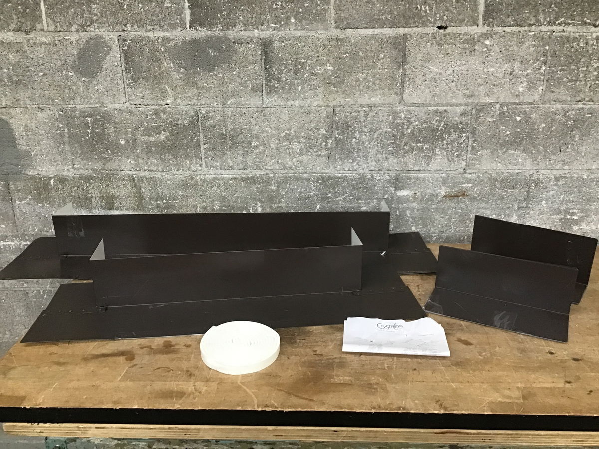 Crystalite brand aluminum flashing kit for a small curb mount skylight. Tail & Head flashing measure 38.25"W, eight pieces of 12" step flashing for each side are included.