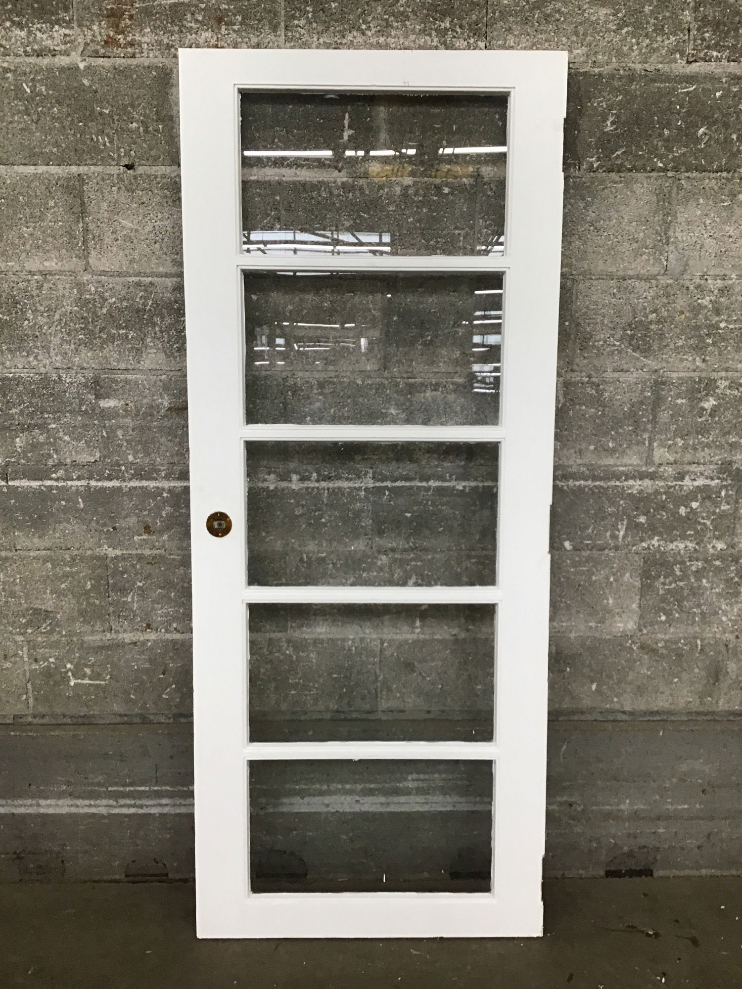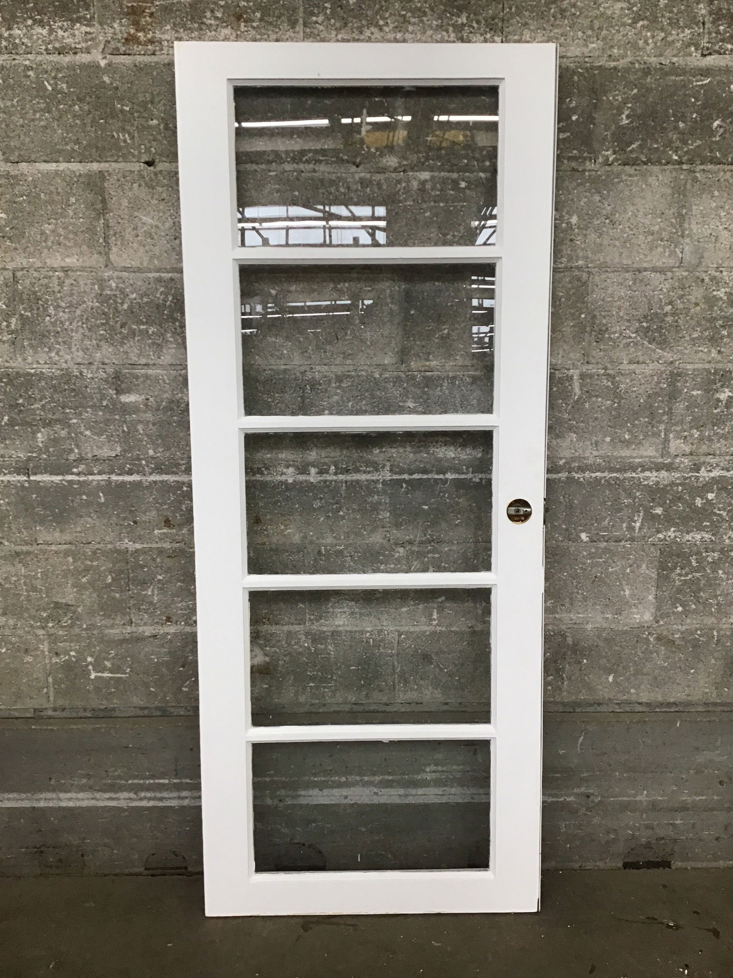 Five lite door that was shortened quite a bit and not really proportional. Price reflects condition.