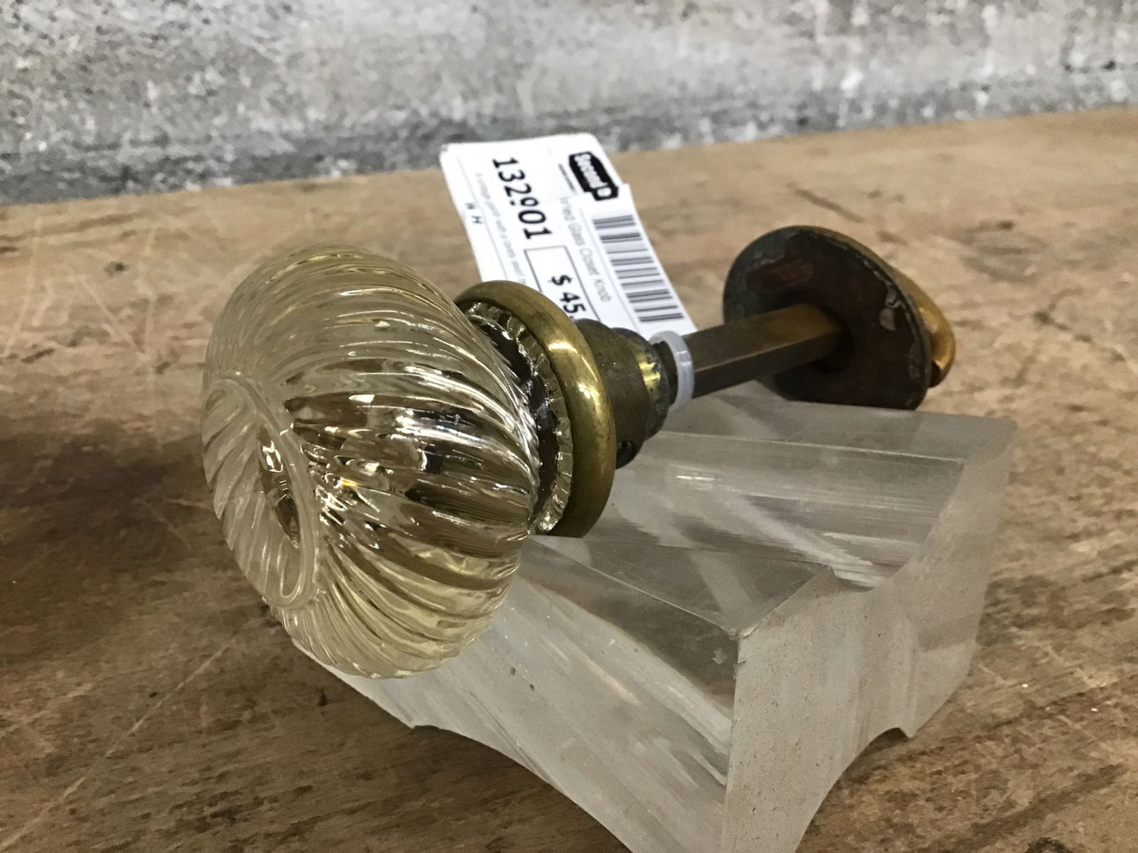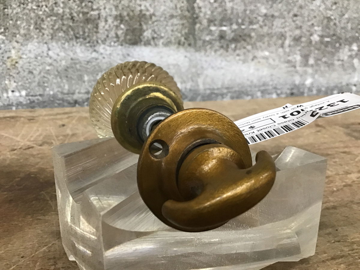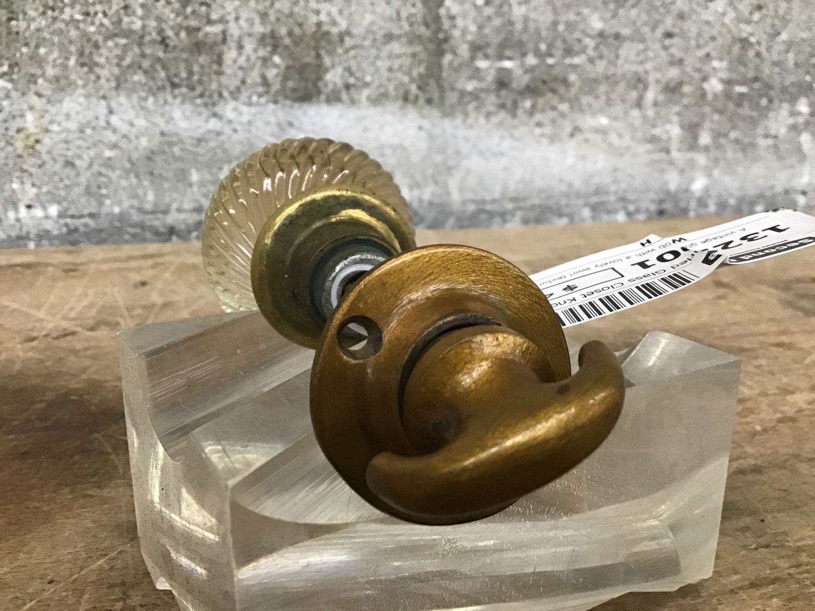A vintage glass knob with a lovely swirl texture and thumbturn knob on the opposite side, perfect for a closet! Has a fixed spindle.