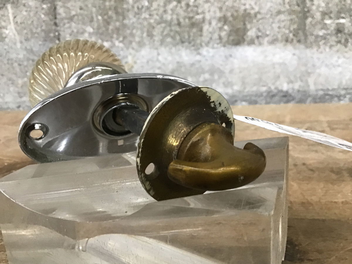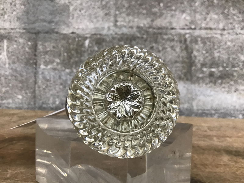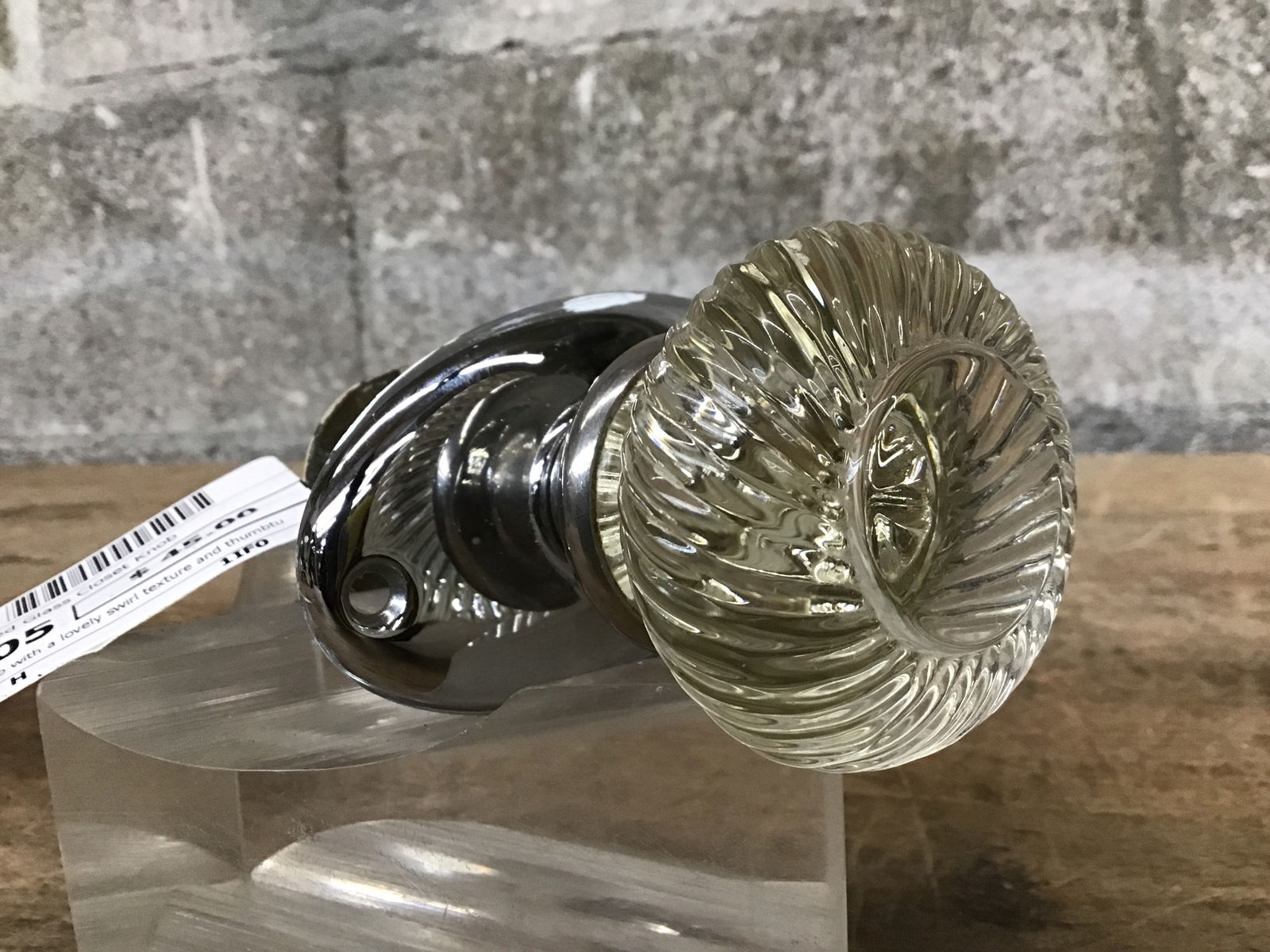 A vintage glass knob with a lovely swirl texture and thumbturn knob on the opposite side, perfect for a closet! Has a fixed spindle.