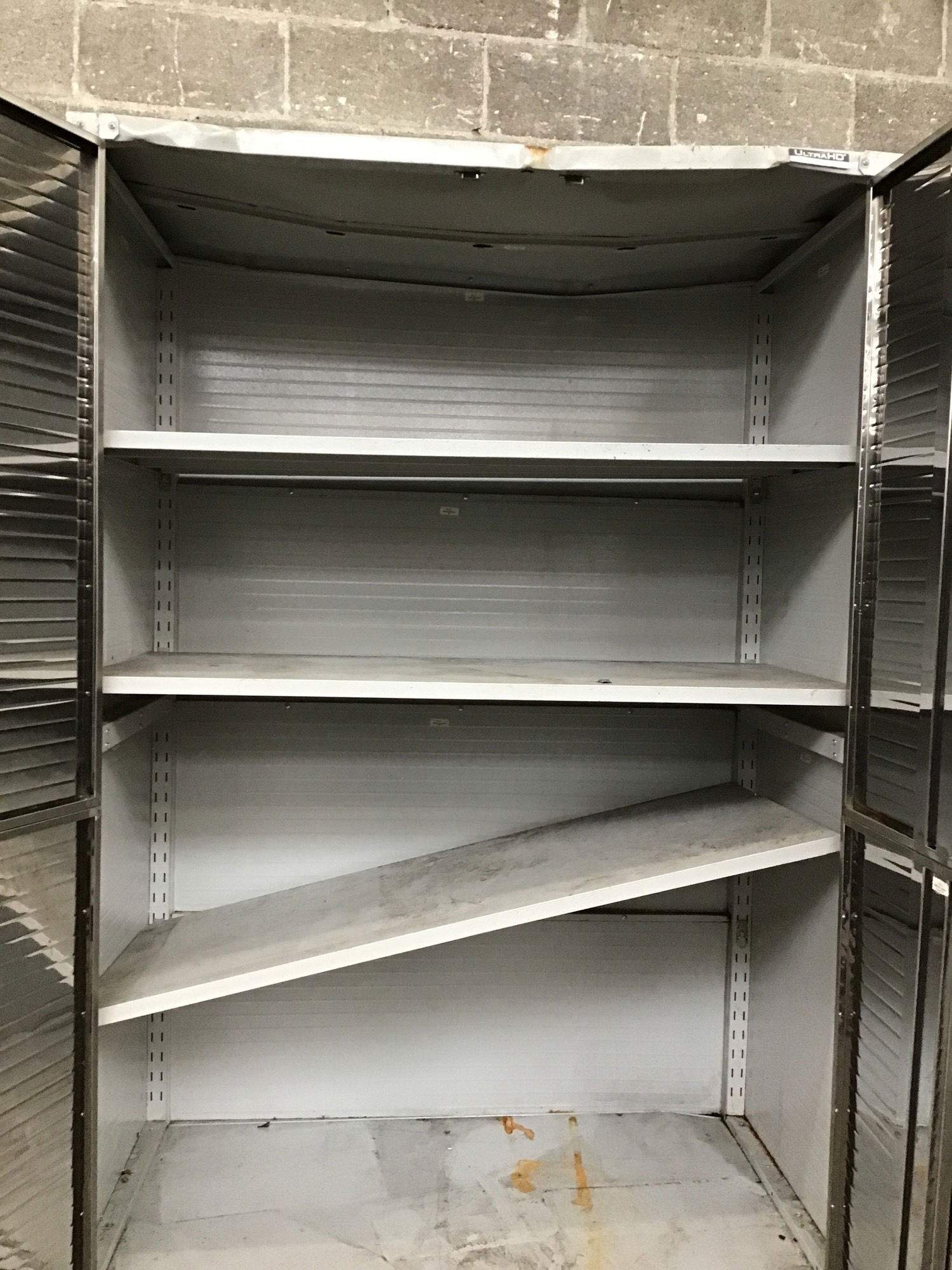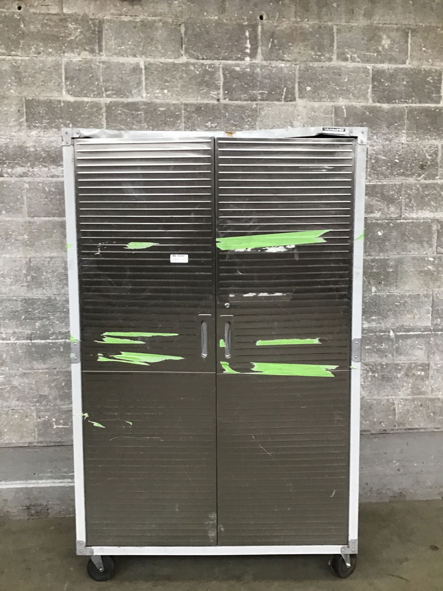 This rolling steel storage cabinet has been put through the wringer, but if you just need a convenient place to store some stuff in your shop or garage it'll do. Comes with three adjustable shelves.