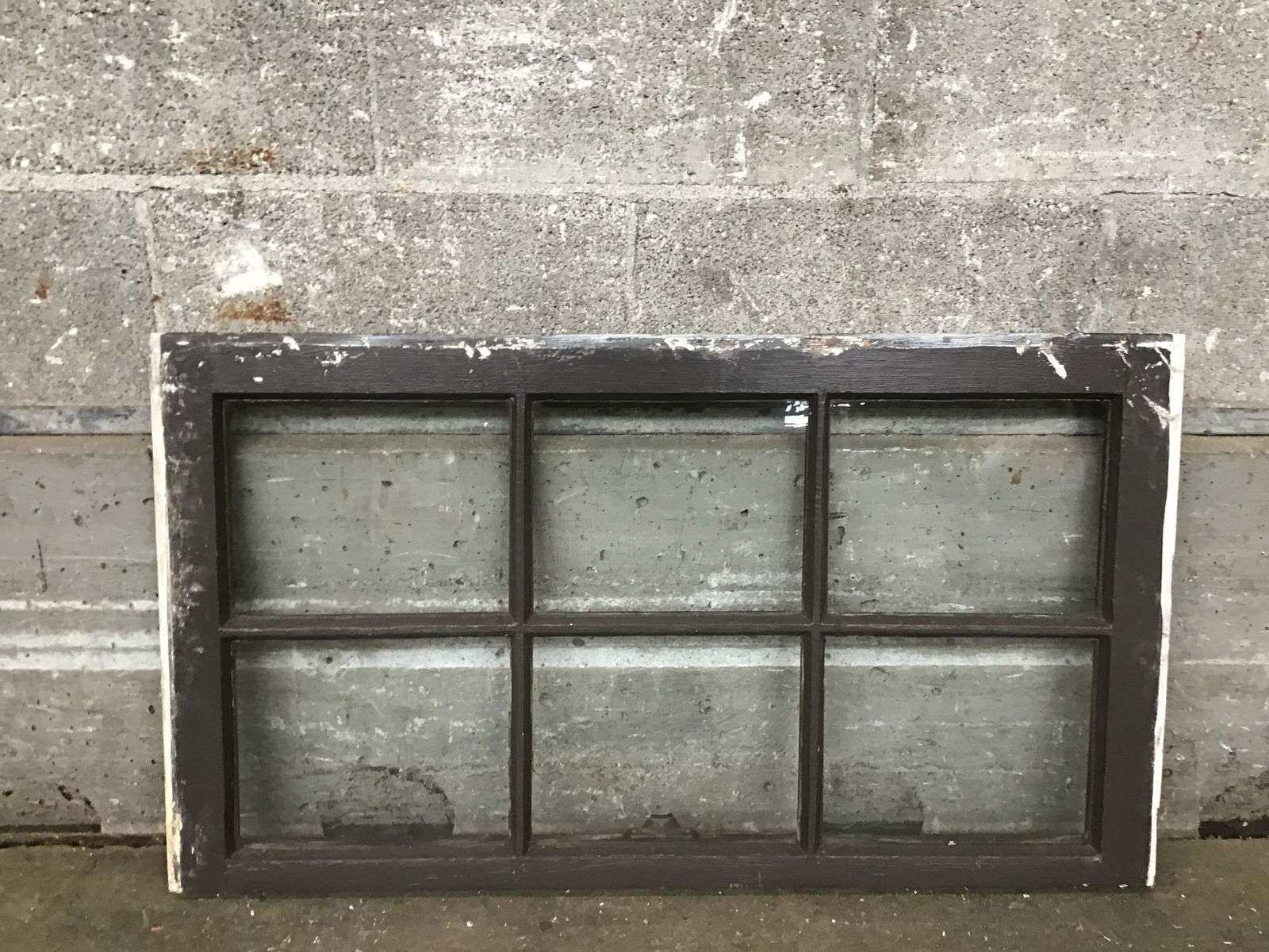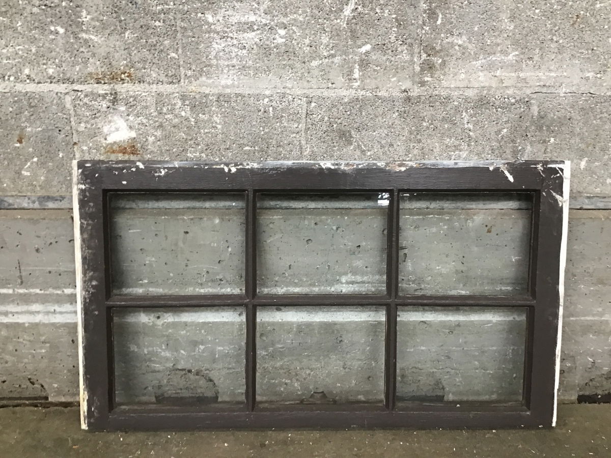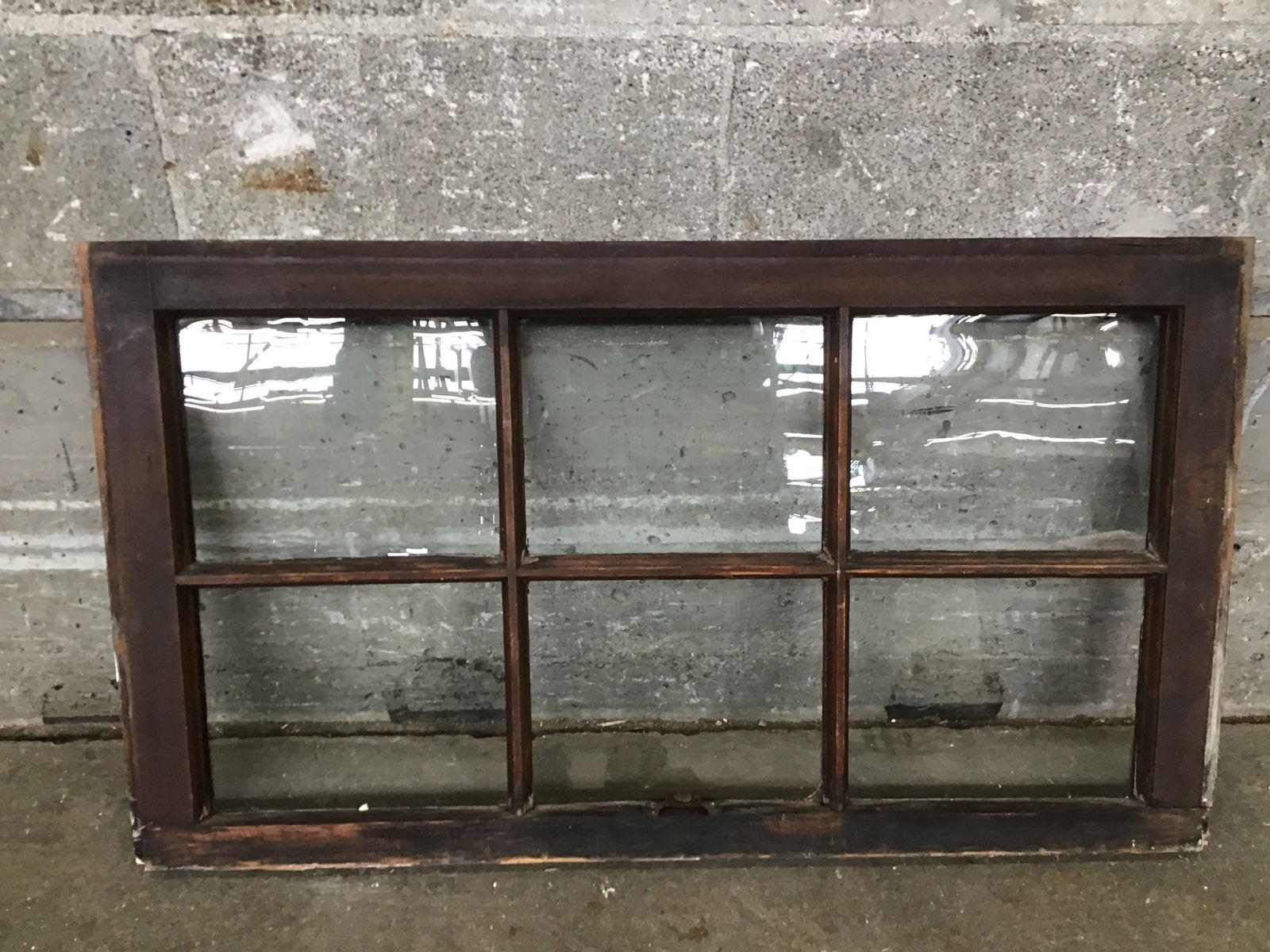 Very handsome wood window sash with 6 wavy glass lites. Painted brown on one side with a nice, dark stain on the other. Good construction, frame is in nice shape.