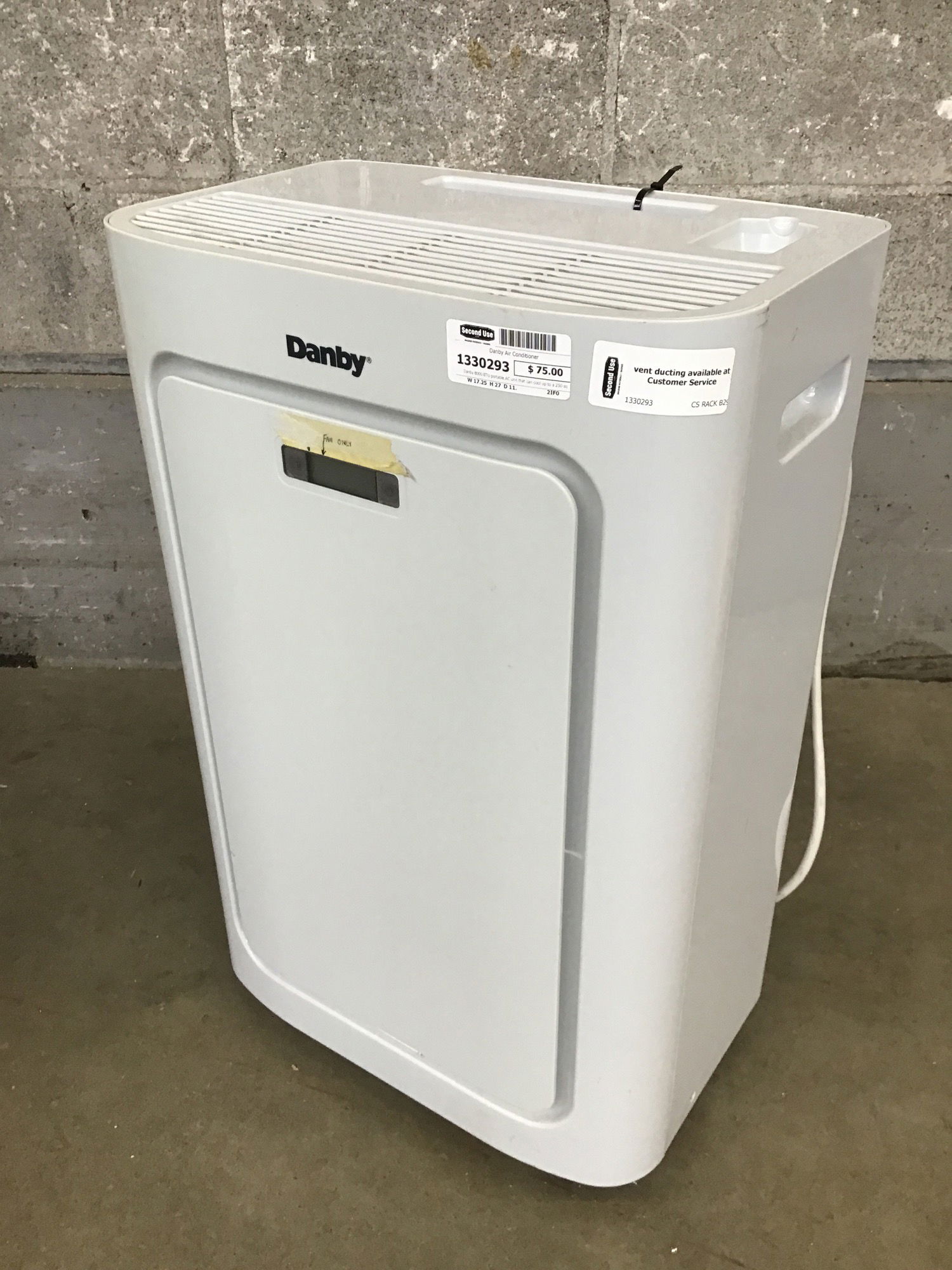 Danby 8000 BTU portable AC unit that can cool up to a 250 sqft space. It turned on and the fan blew air. Unfortunately our warehouse is a solid 32 degrees right now so we're unsure if it actually cools. Take a chance and get a head start on what is sure to be an incredibly hot summer. Full product specs available here.