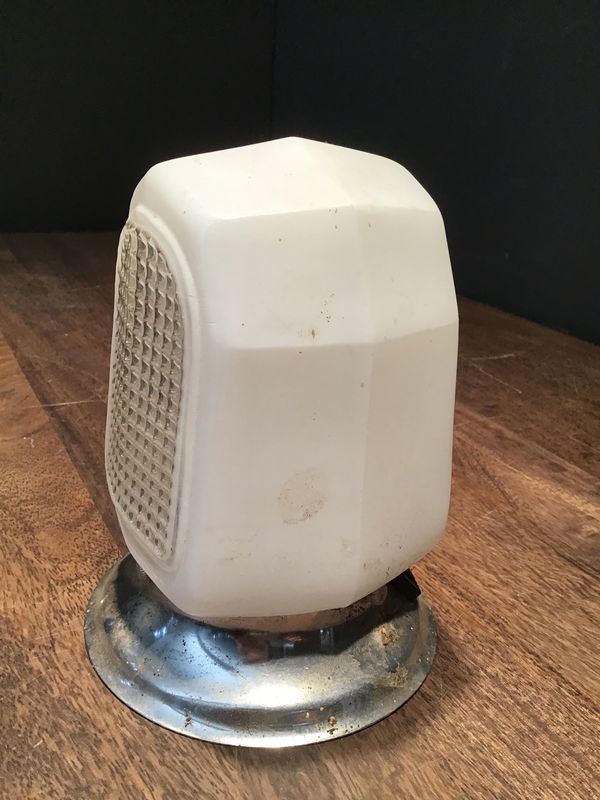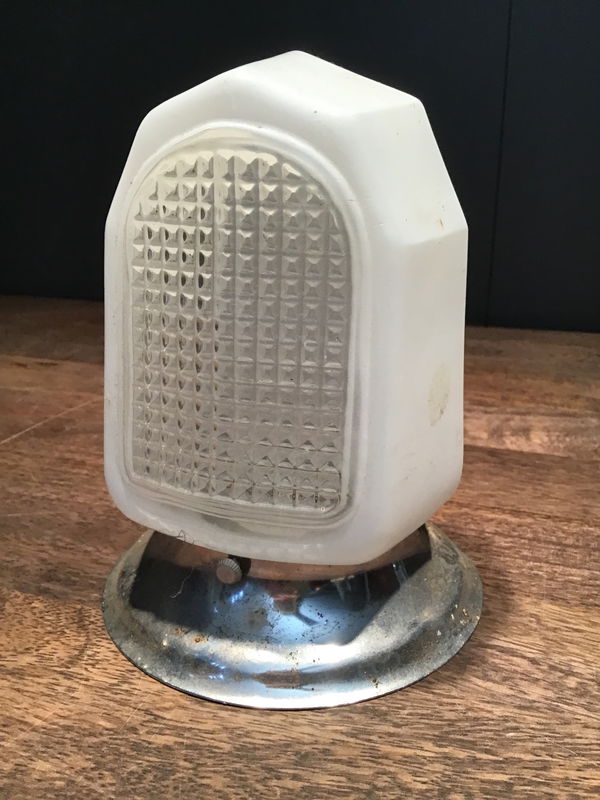 Art deco style bathroom light fixture. Milk glass with clear glass in the middle attatched to a silver cirucular base. Might need a little bit of work to rewire but a classic looking wall sconce nonetheless