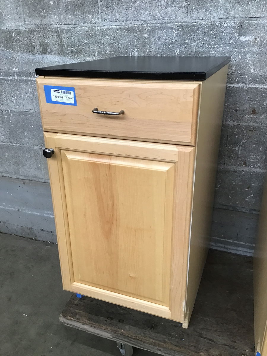 Maple base cabinet with attached black painted countertop. Clean and damage free.