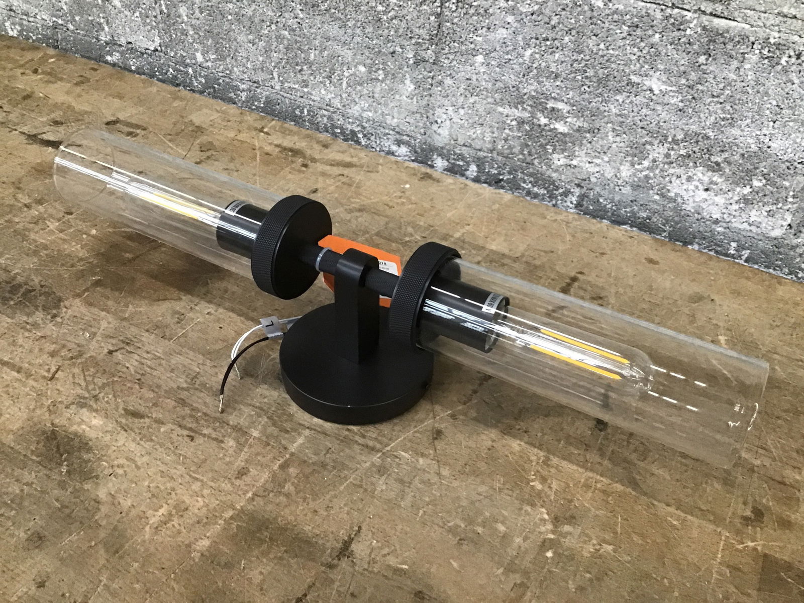 Well made brass wall sconce in a matte black finish with clear shades and modern LED Edison style bulbs. Clean and free of damage, ready to install.