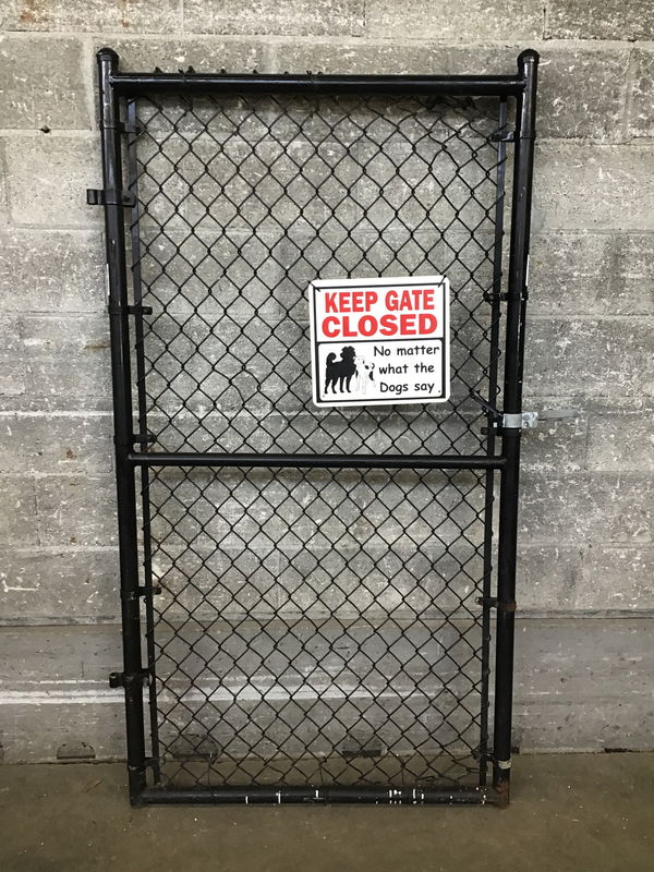 Black Chain Link Fence Gate with rubber coated chain link and a U-latch.