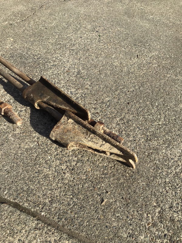Three piece set of arc shaped, 5/8" diameter steel rod that is threaded on each end and once held together a redwood water tank that had ~ a 15' diameter, so if you reconnected the three pack together, you should end up with a circle that's about 15' across. Length listed is tip to tip across, not following the curve. Dimensions are approximate and might vary +/- a foot on the length. Photo may be representational.