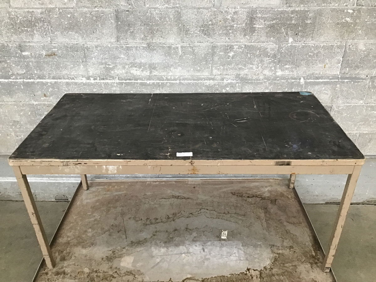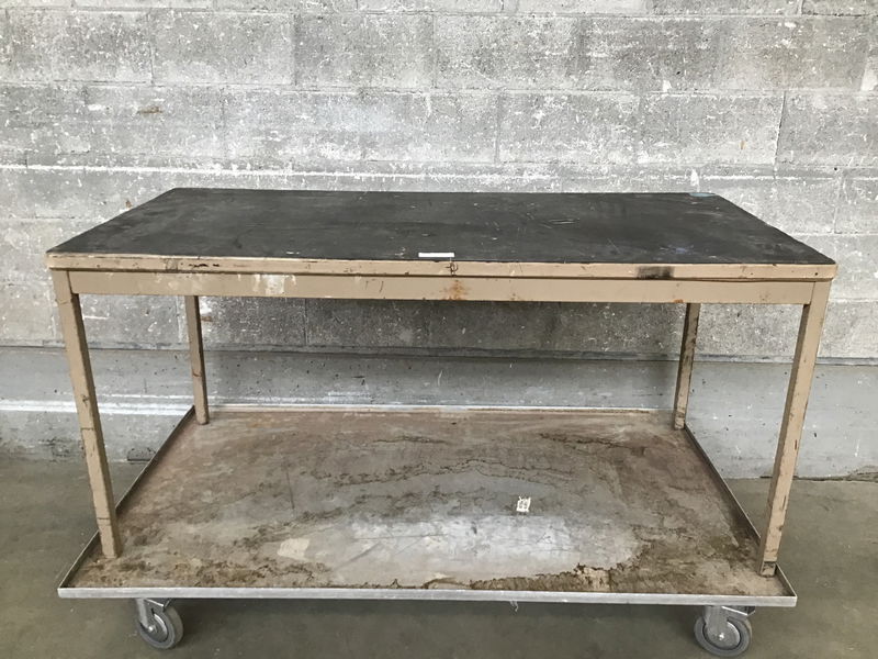 With a sturdy steel base and well worn in top, this modest work table is ready to be put right back to use. Swap the top out for a butcher block and you could also convert this into a sweet kitchen island!