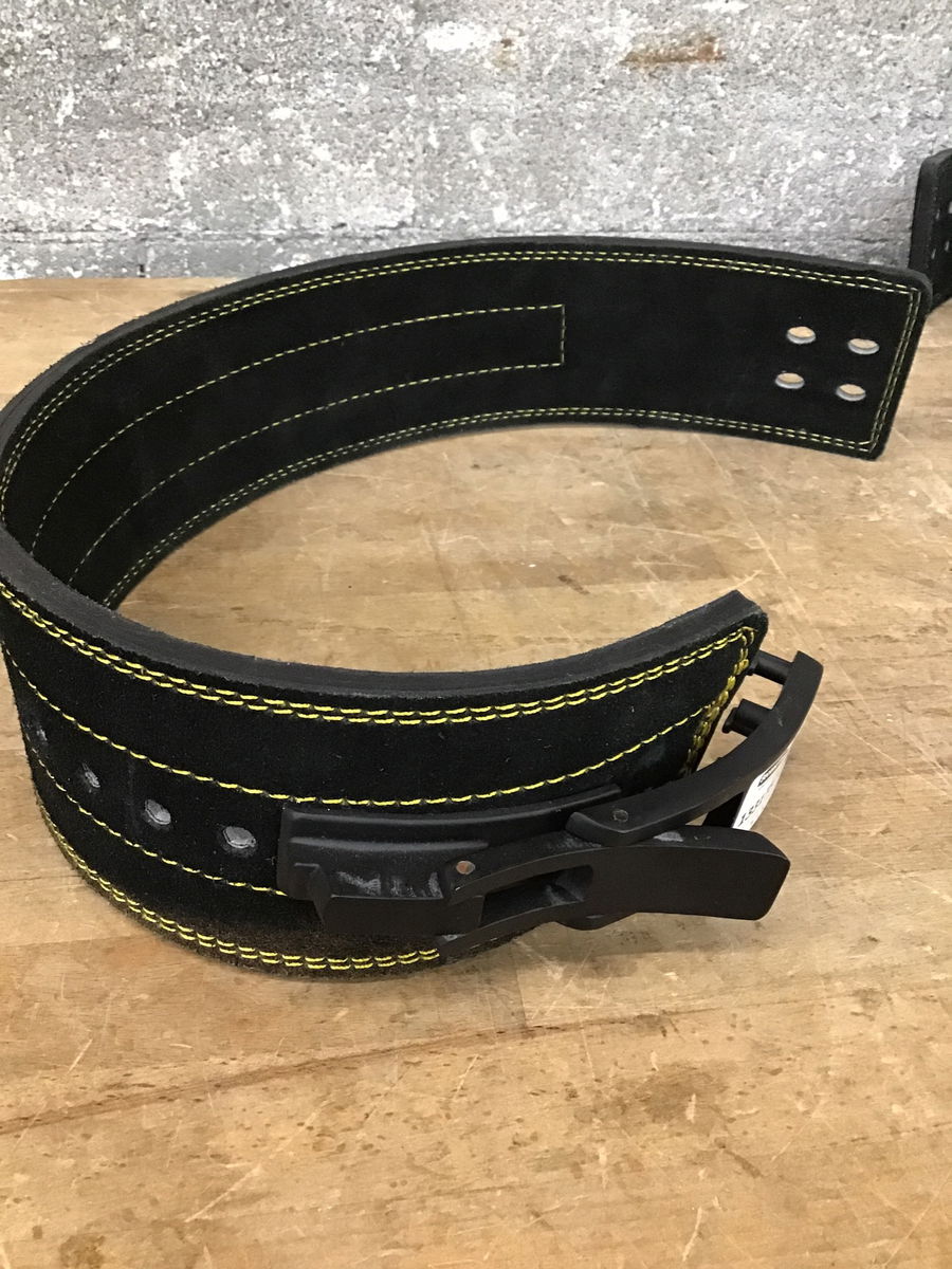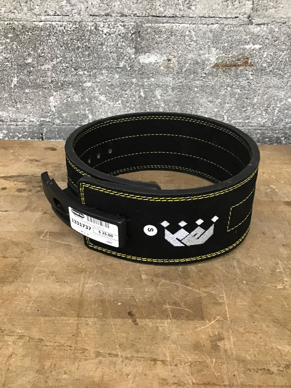 A size Small powerlifting belt with a lever buckle. Appears to be in good shape.