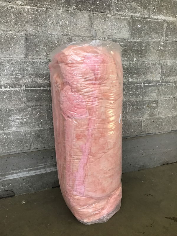 New bag of insulation that arrived without labels from the factory. The bag contains about ~45sqft of coverage and is likely R-19 based on the batt thickness.