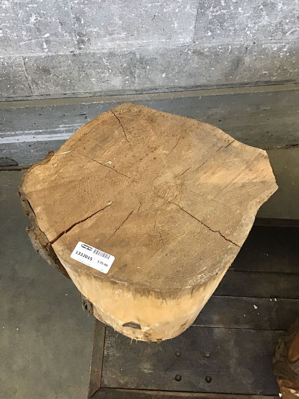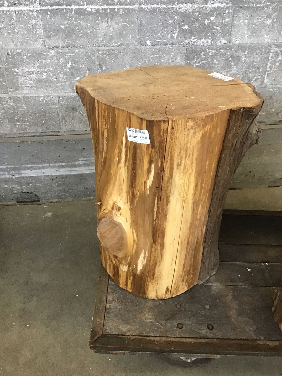 Locally milled and kiln dried. It would take little effort to sand this and oil it. The results would be a cute side table.