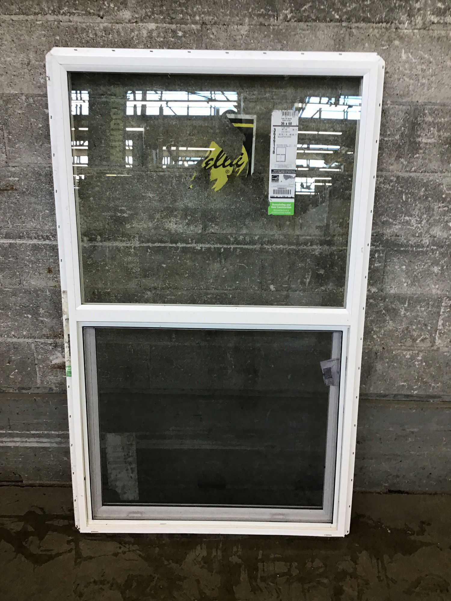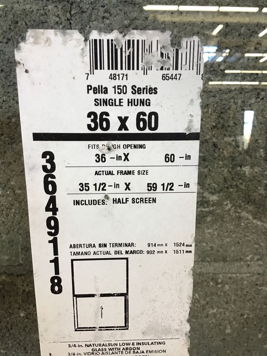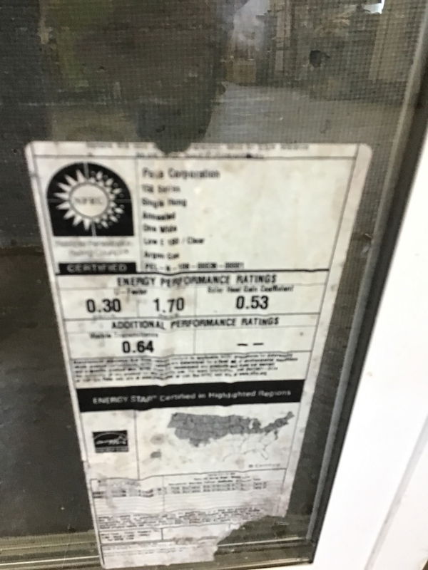 Guessing less than five years old, but left out in the rain for a while, never installed Pella white vinyl window with still readable energy tag. This one should meet egress requirements, but you should check your local building codes first.