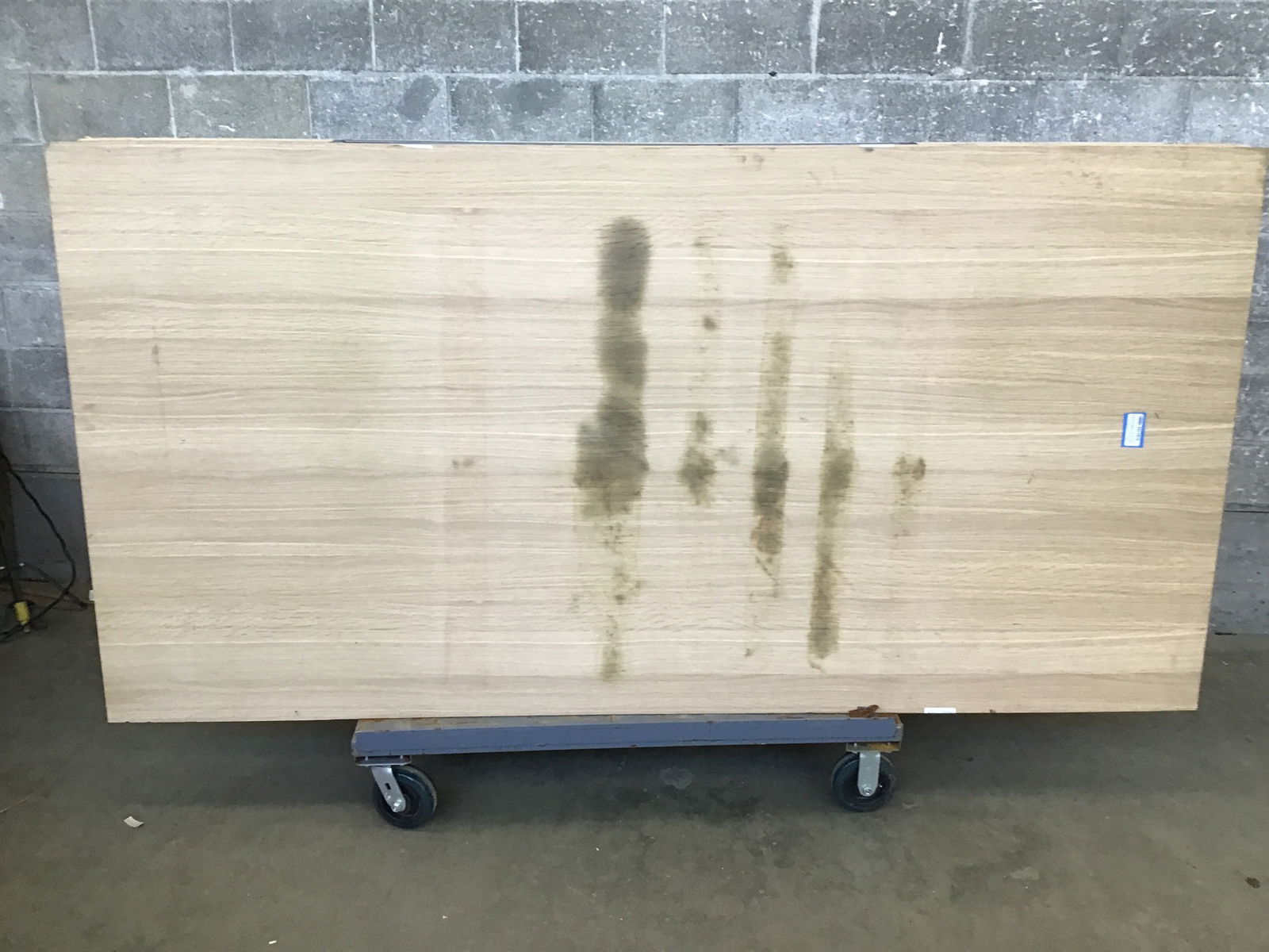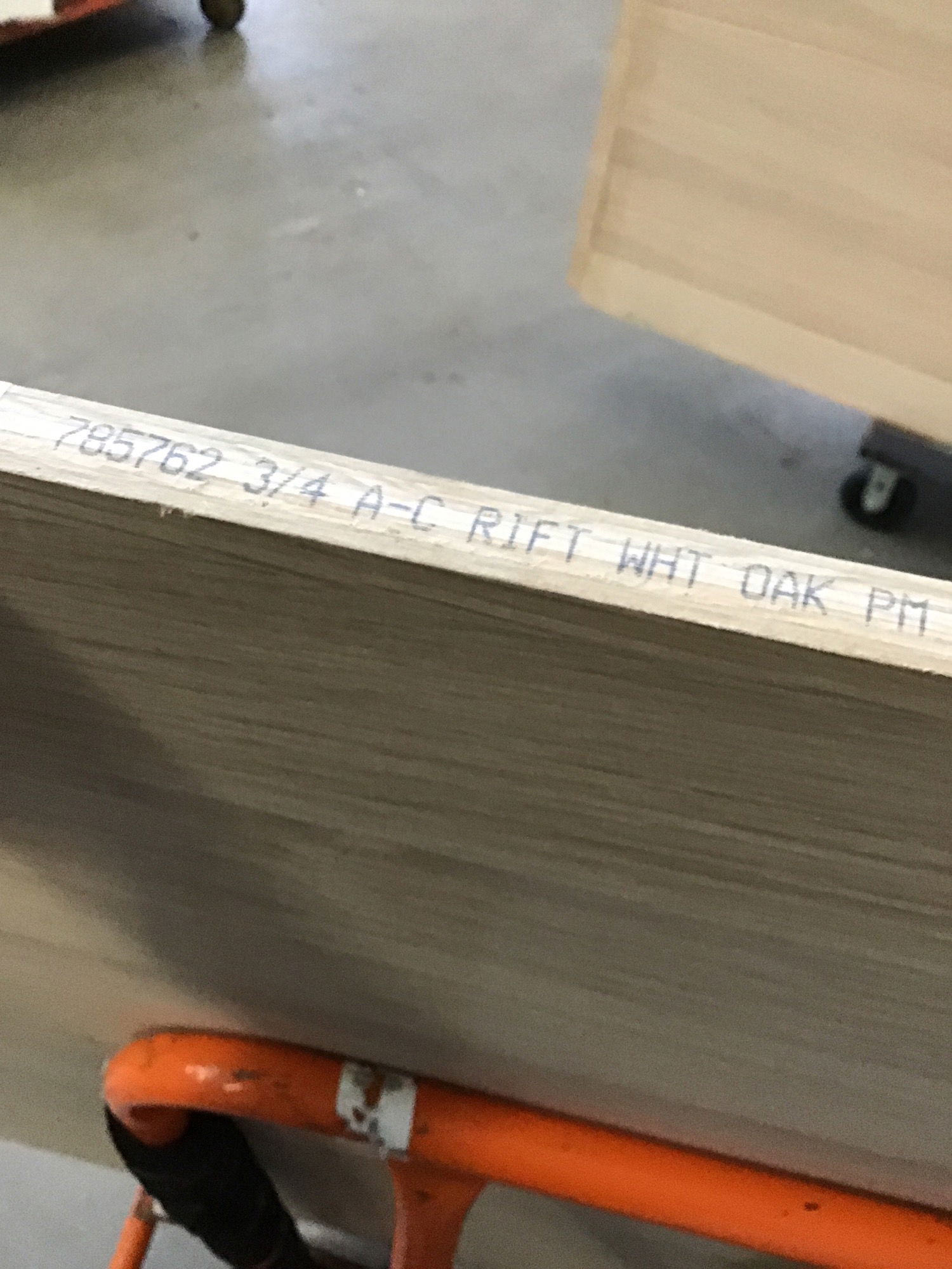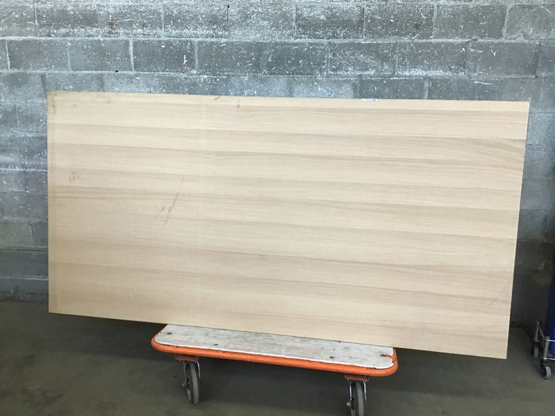 3/4" Rift Sawn (veneer) White Oak Finish Grade Plywood with some big smudges and scratches, which price reflects. This material runs ~$240 per sheet on the retail market.