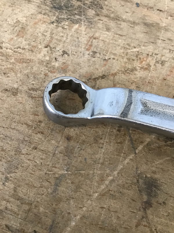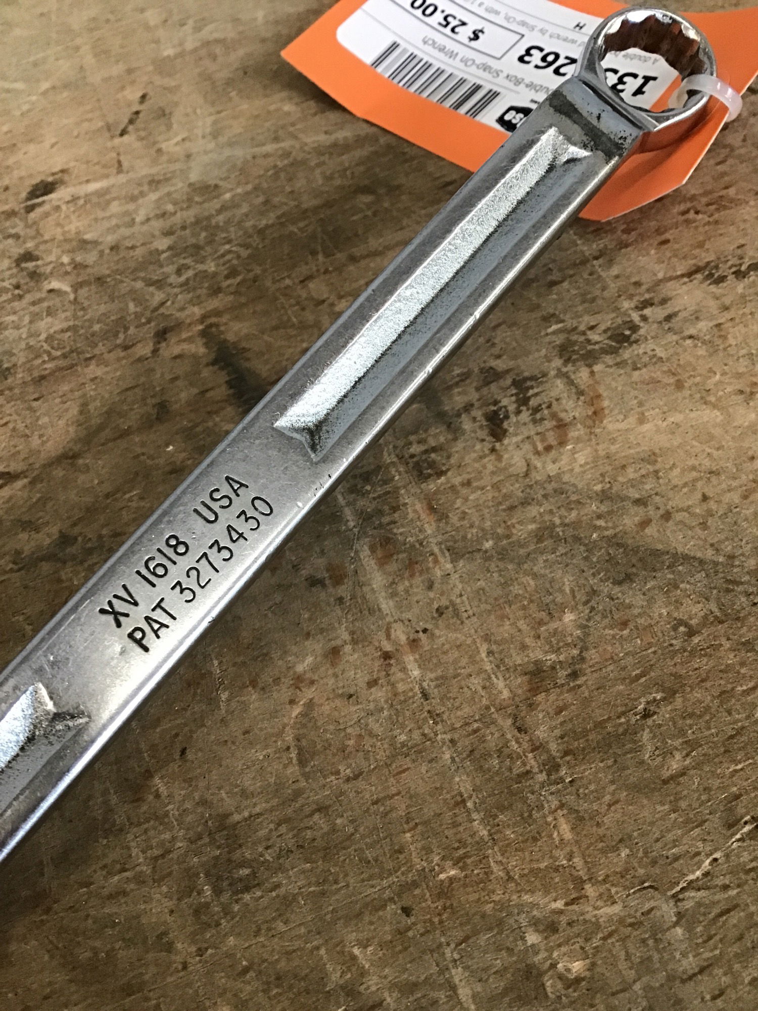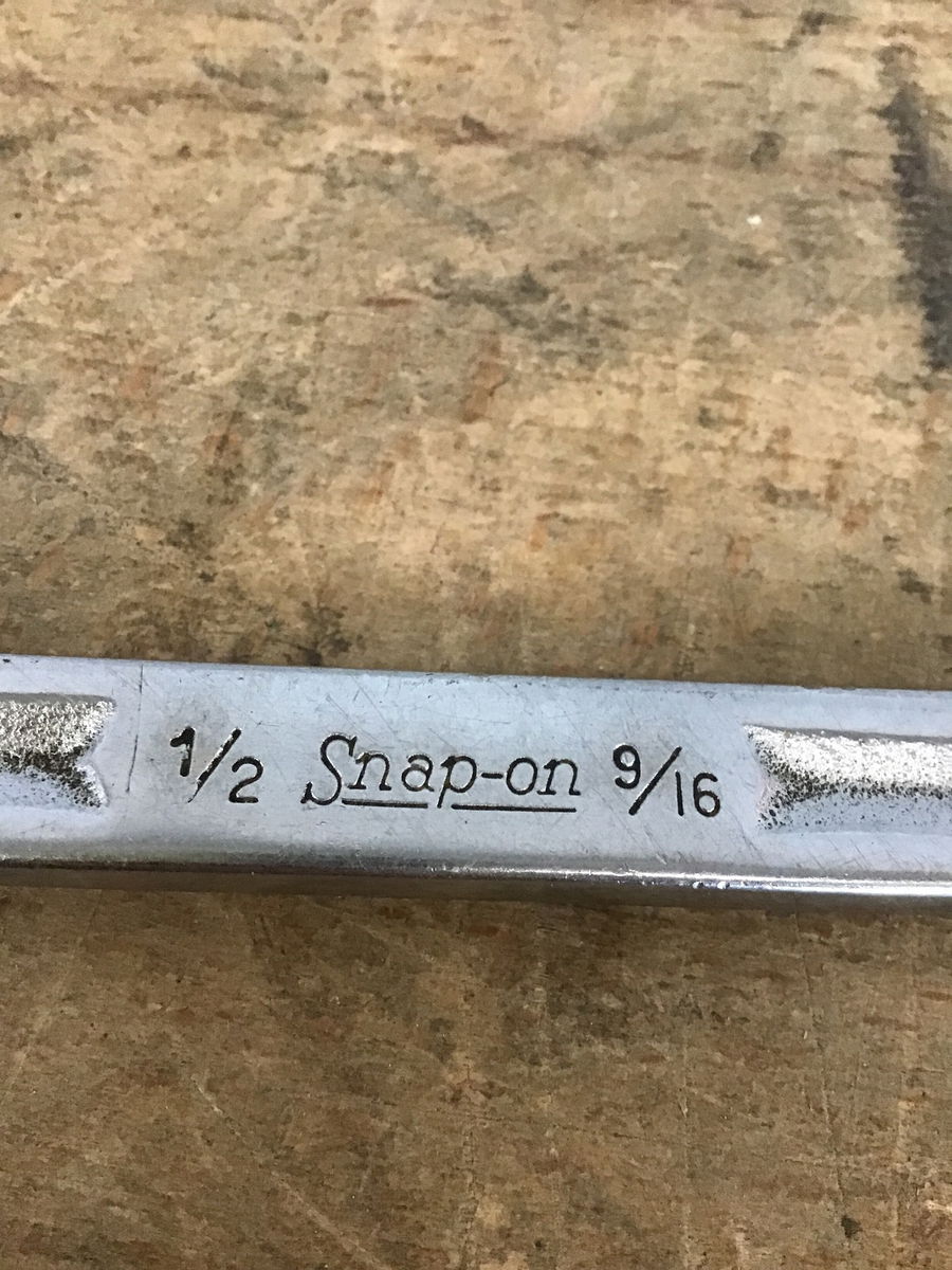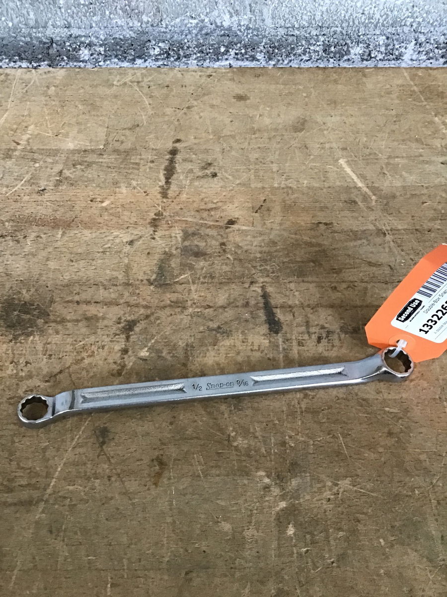 A double box ended wrench by Snap-On, with a 1/2" side and a 9/16" side.