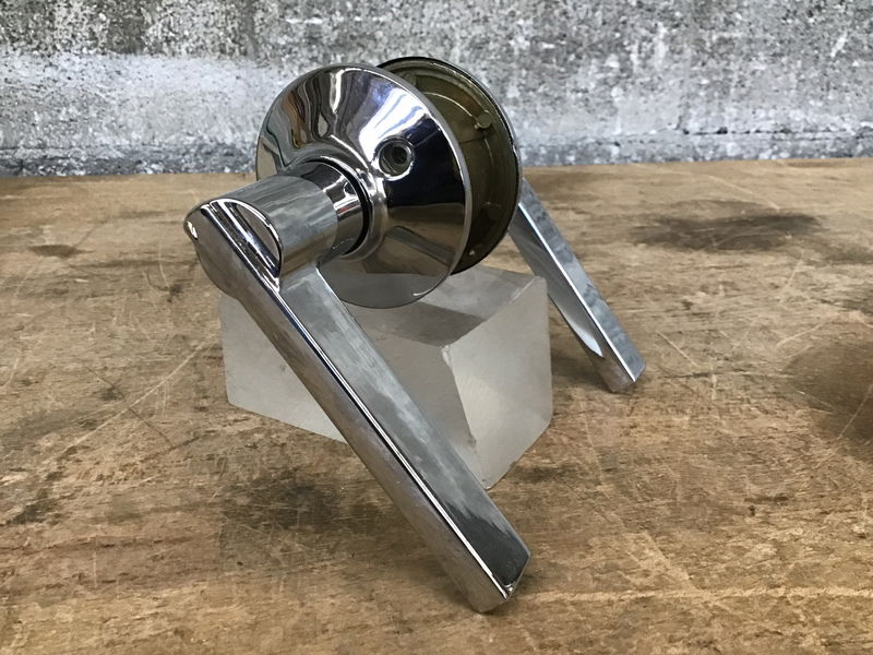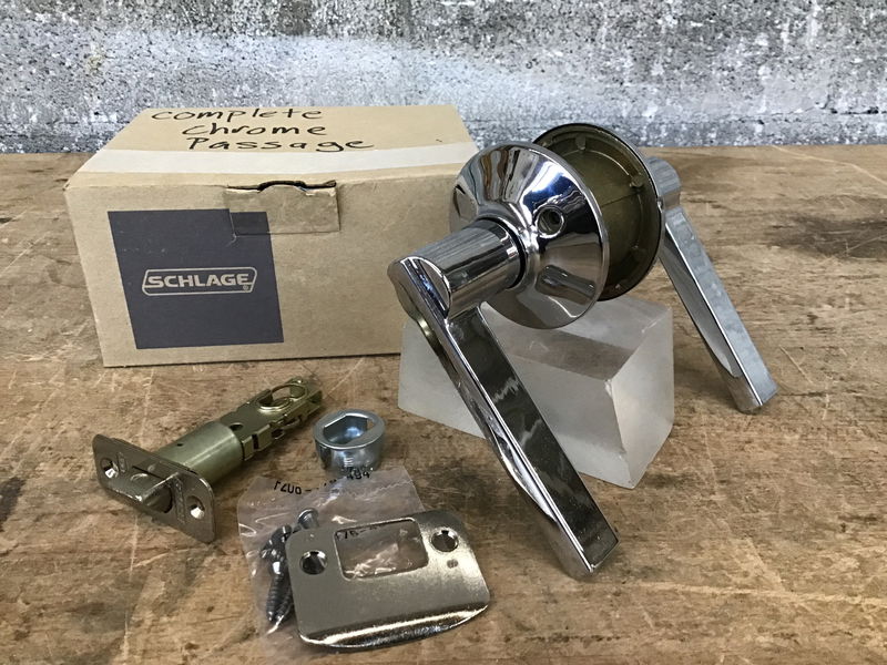 Brand new Schlage "Latitude" passage lever set in a bright chrome finish. We got quite a few of these in at once, so grab as many as you need to add a fresh look to all your doors!!