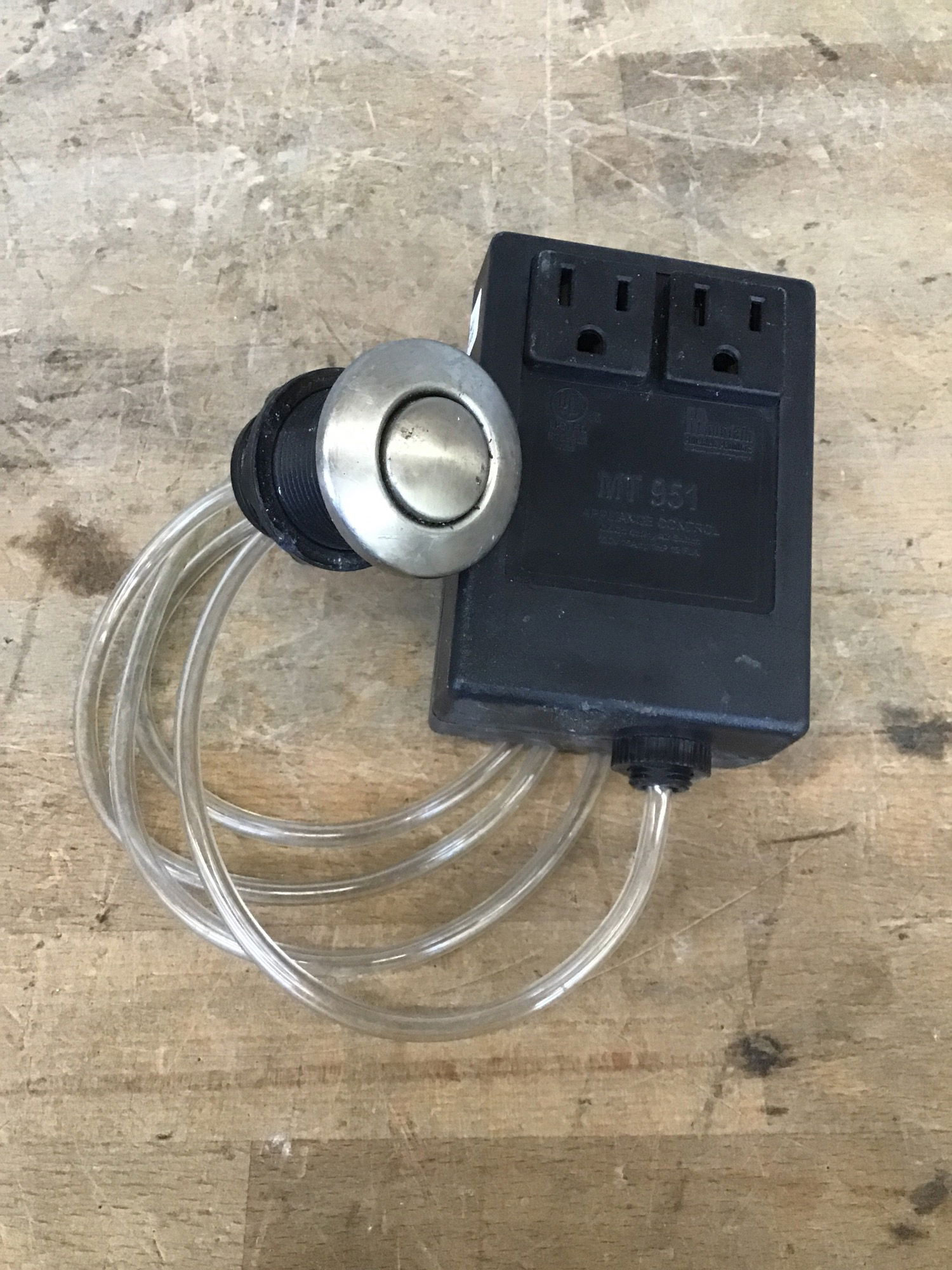 Mountain Plumbing Products air switch for garbage disposals. Turn your disposal on and off with the press of a button! Worked great when I hooked it up to a unit in house. You can buy one new on Zamonoz for about $80.