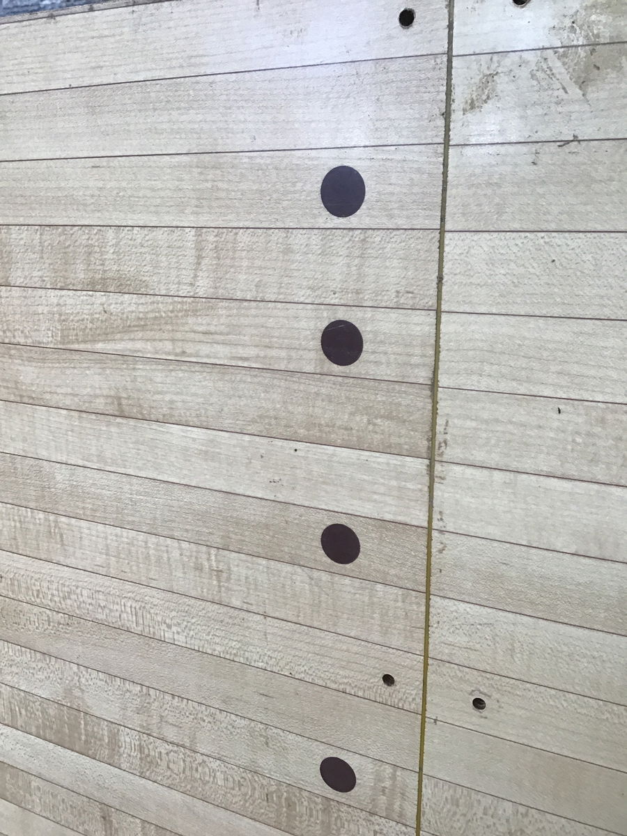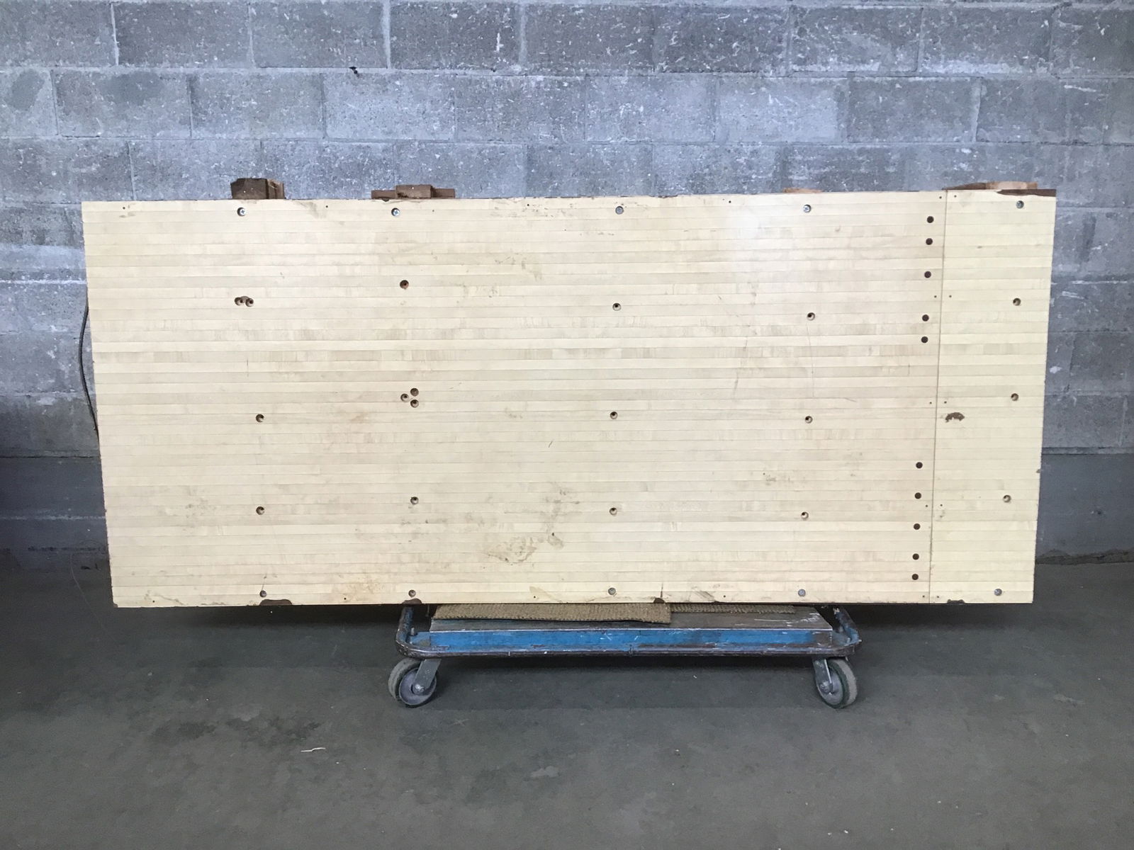 Maple bowling lane, salvaged from Burien's Hi-Line Lanes. Lots of memories in these floors. Please note, there is a 1/2" thick laminate topper covering the Maple (added in the late 80's). It is fully adhered to the wood below and is near impossible to be removed. These lanes could easily turn into incredibly sturdy work bench tops! Photo may be representational.