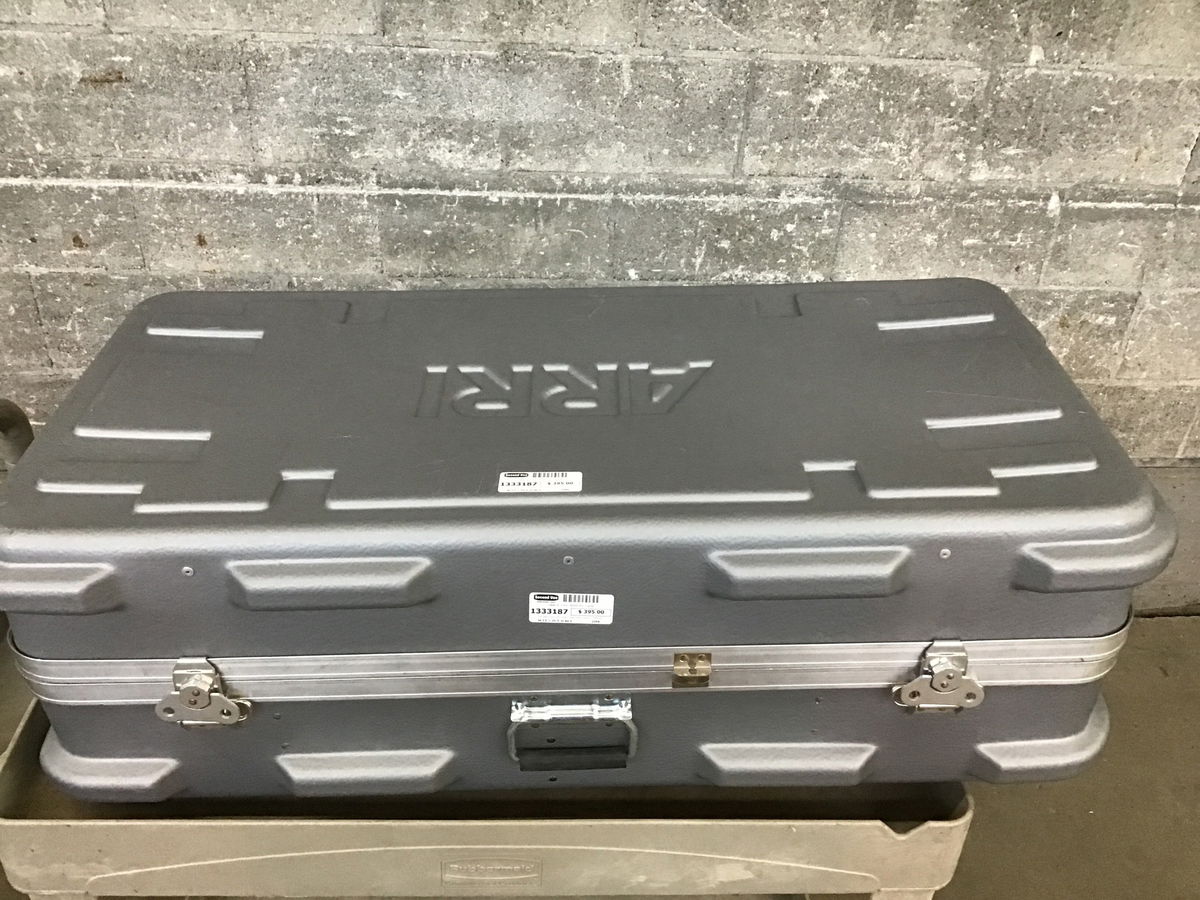 This heavy duty grey plastic case holds three Arri 300Plus lights that are used in photography but have plenty of other applications as well, like a shop light. These are quite expensive new and even used, so three of them in their carrying case is a screaming deal! Comes with two light stands.