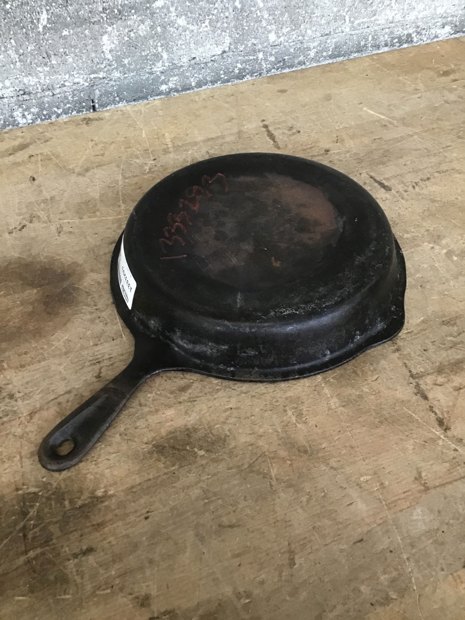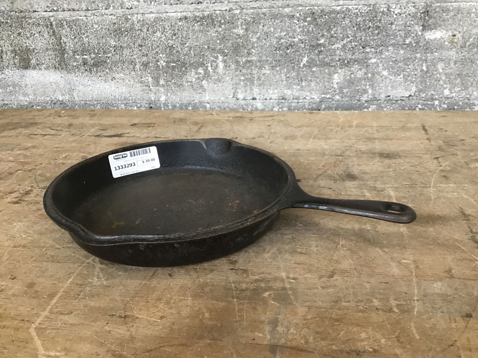 I believe this unrestored cast iron combo cooker skillet lid is for an older Lodge. It has a rock to it on a glass top range. The ring that sits inside the base skillet is 10 5/8" diameter at the handle and 11 3/16" at the drip spouts.