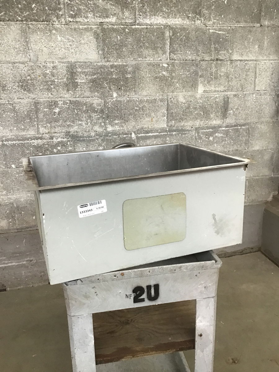 Undermount deep kitchen sink that's been used but was removed without too much damage to the mounting lip. I don't see any brand information but it's a really thick gauge of stainless and would make a sweet utility sink.