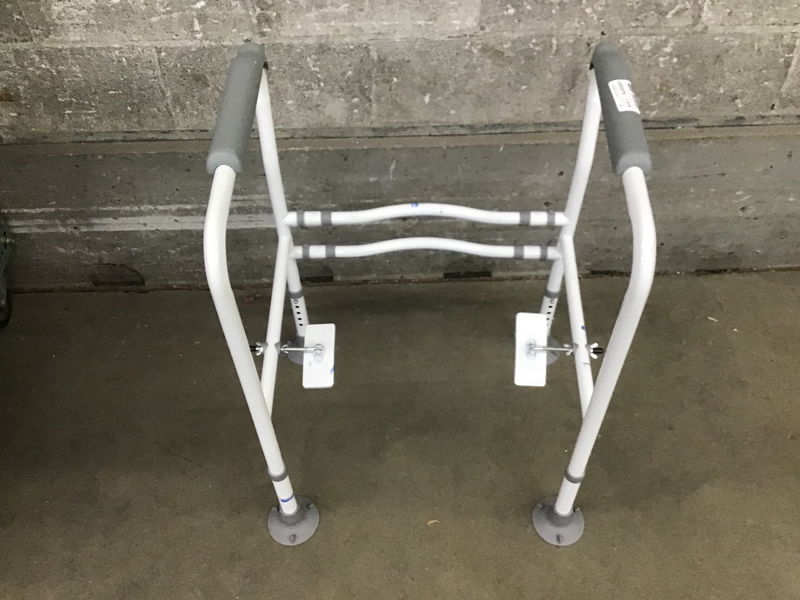A little freestanding system that clamps around your toilet bowl to provide some rails/support for getting off and on the ol' porcelain throne. It's easily adjustable to make it the perfect fit for you!