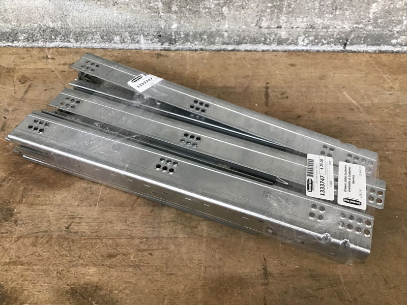 A set of six soft close drawer slides for a cabinet.
