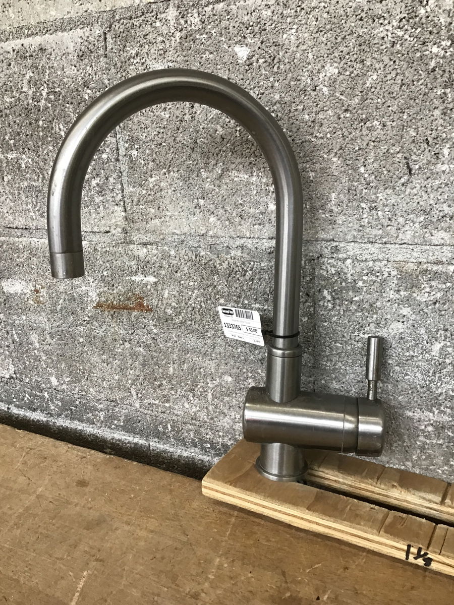 Unbranded brushed nickel kitchen faucet in good shape. Heavy and seems well-made.