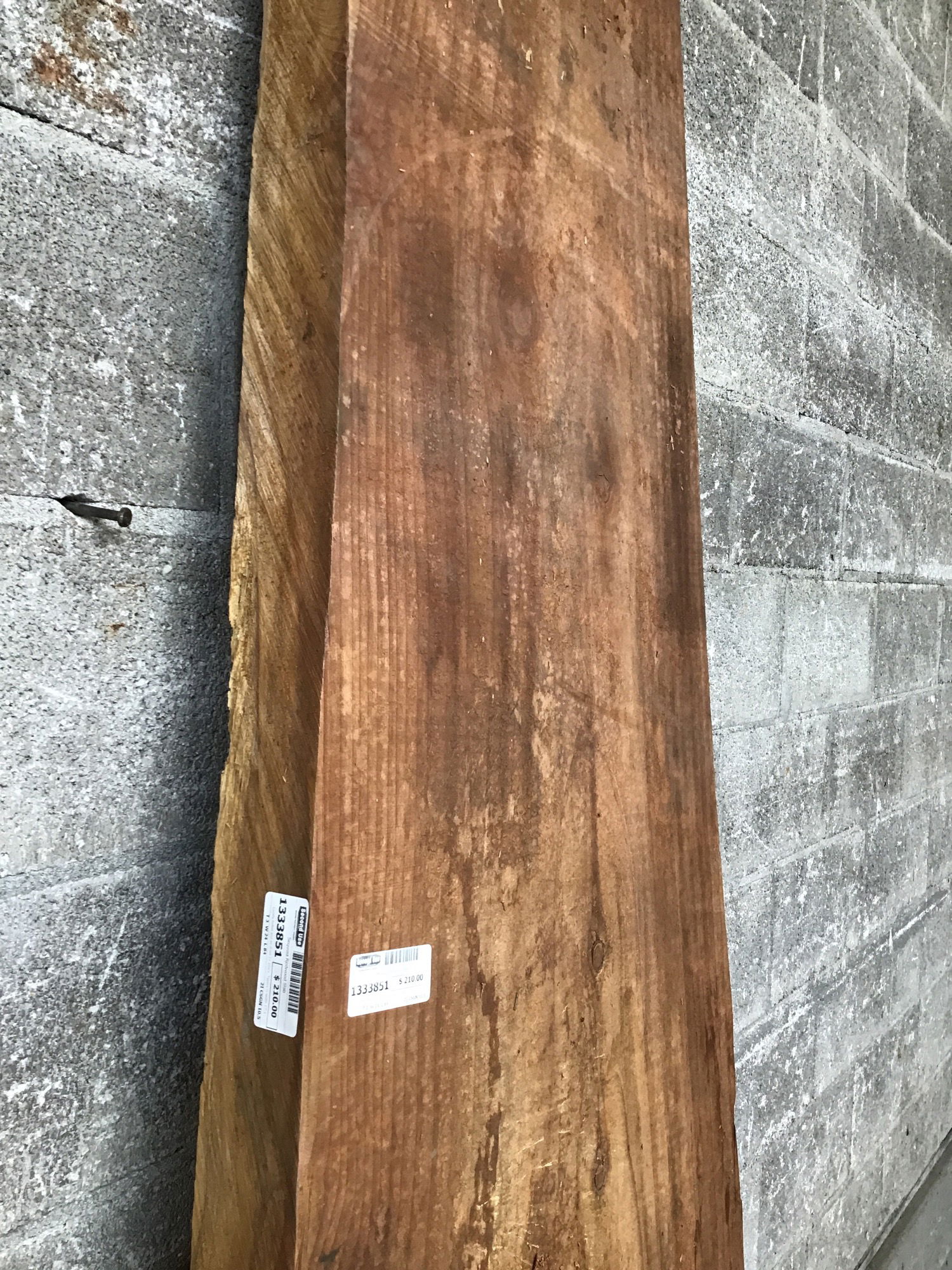 Locally milled and air dried 5+ years. Tapers in width 17" to 24", priced per the slimmer dimension.