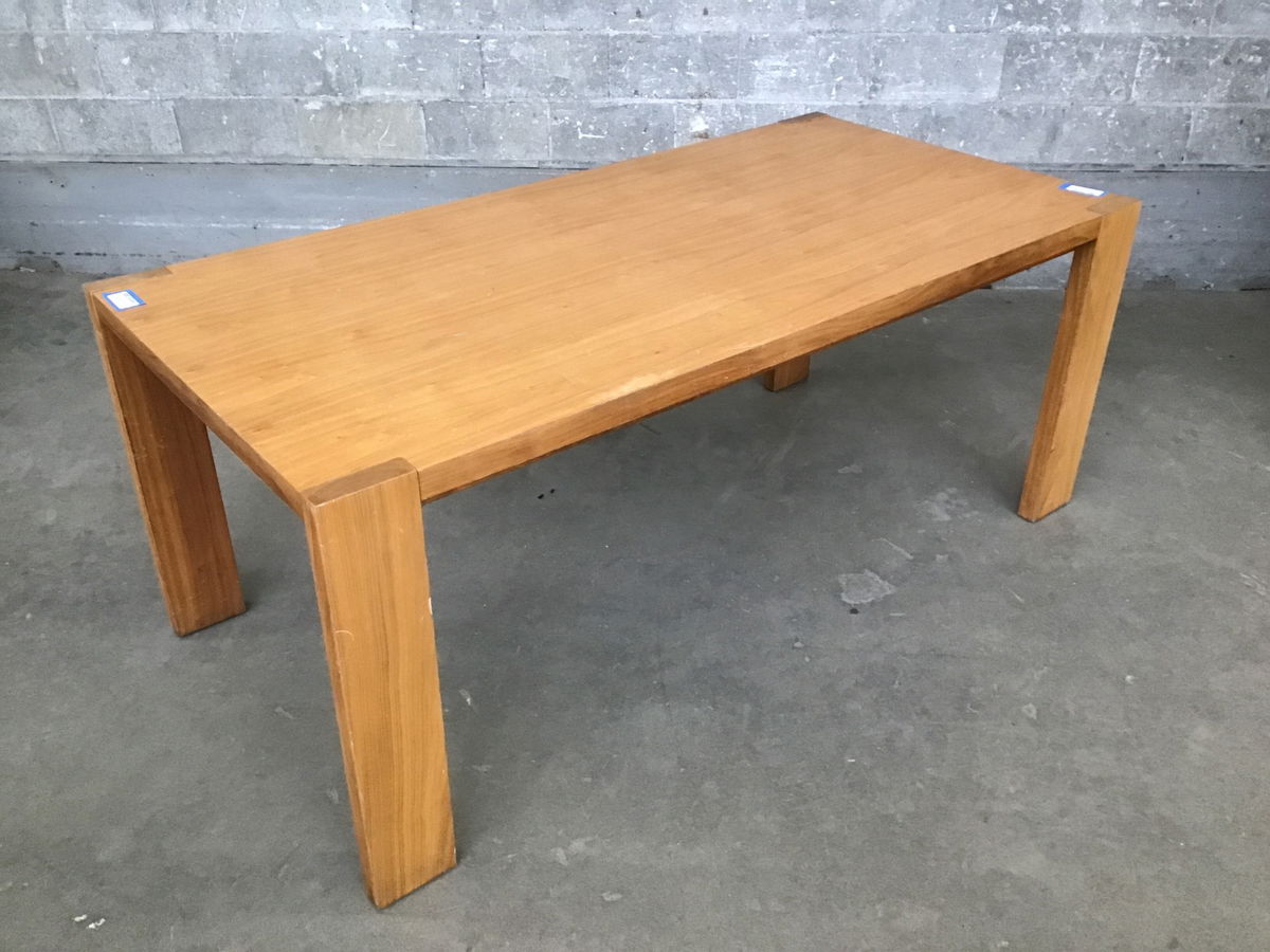 Beautiful, earthy, minimalist Walnut (solid and veneer) dining table by Gus. This previously lived in an office setting. It is structurally sound (legs need tightening) and cosmetically average with one dime size dent in the top. See this beauty reatiling on Lumens.