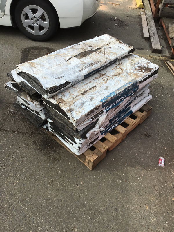 Fifteen bundles of IKO Cambridge asphalt shingles in "Harvard Slate" color. The bundles are a little loosey goosey from being handled a couple times. Price reflects.