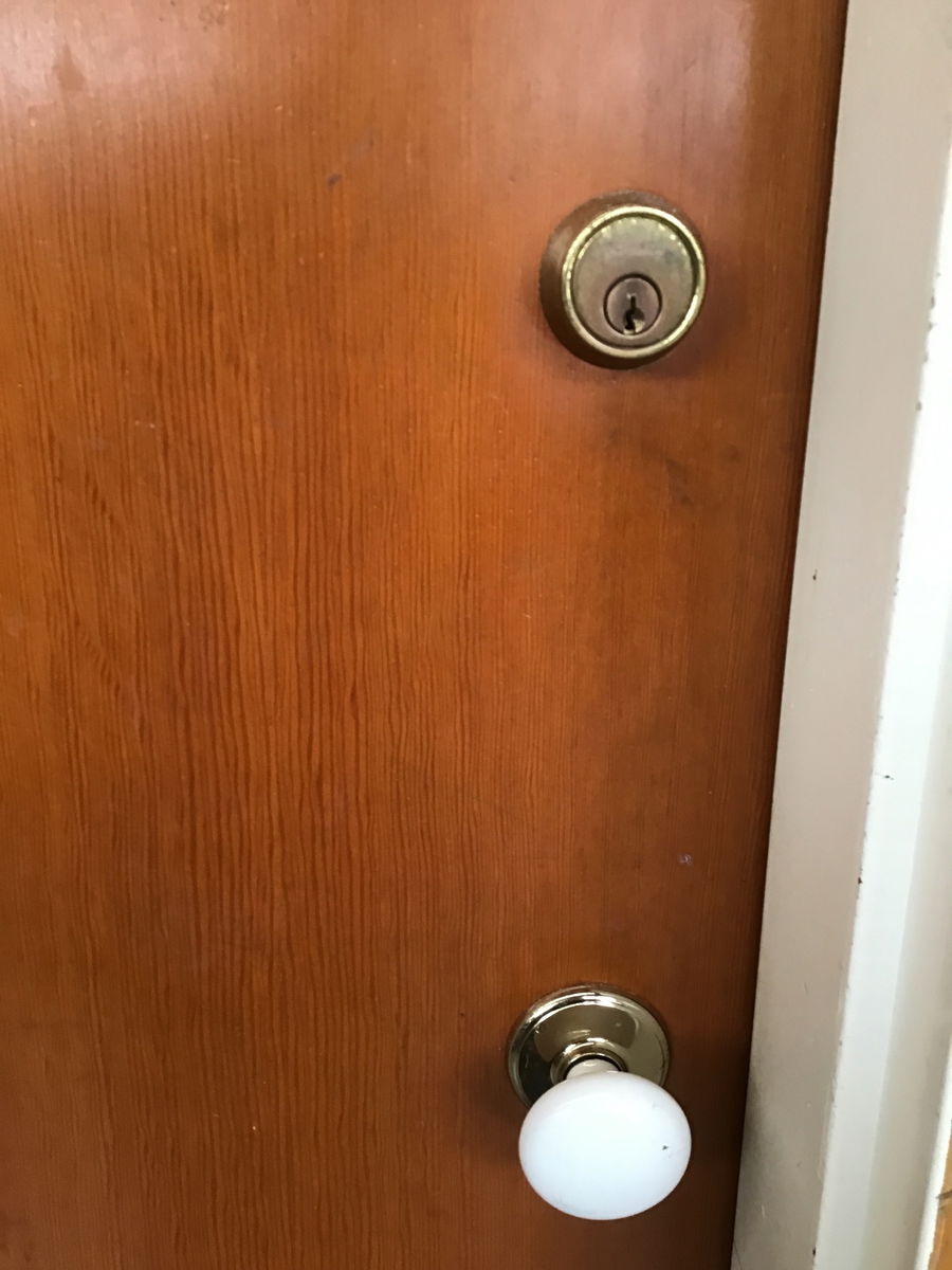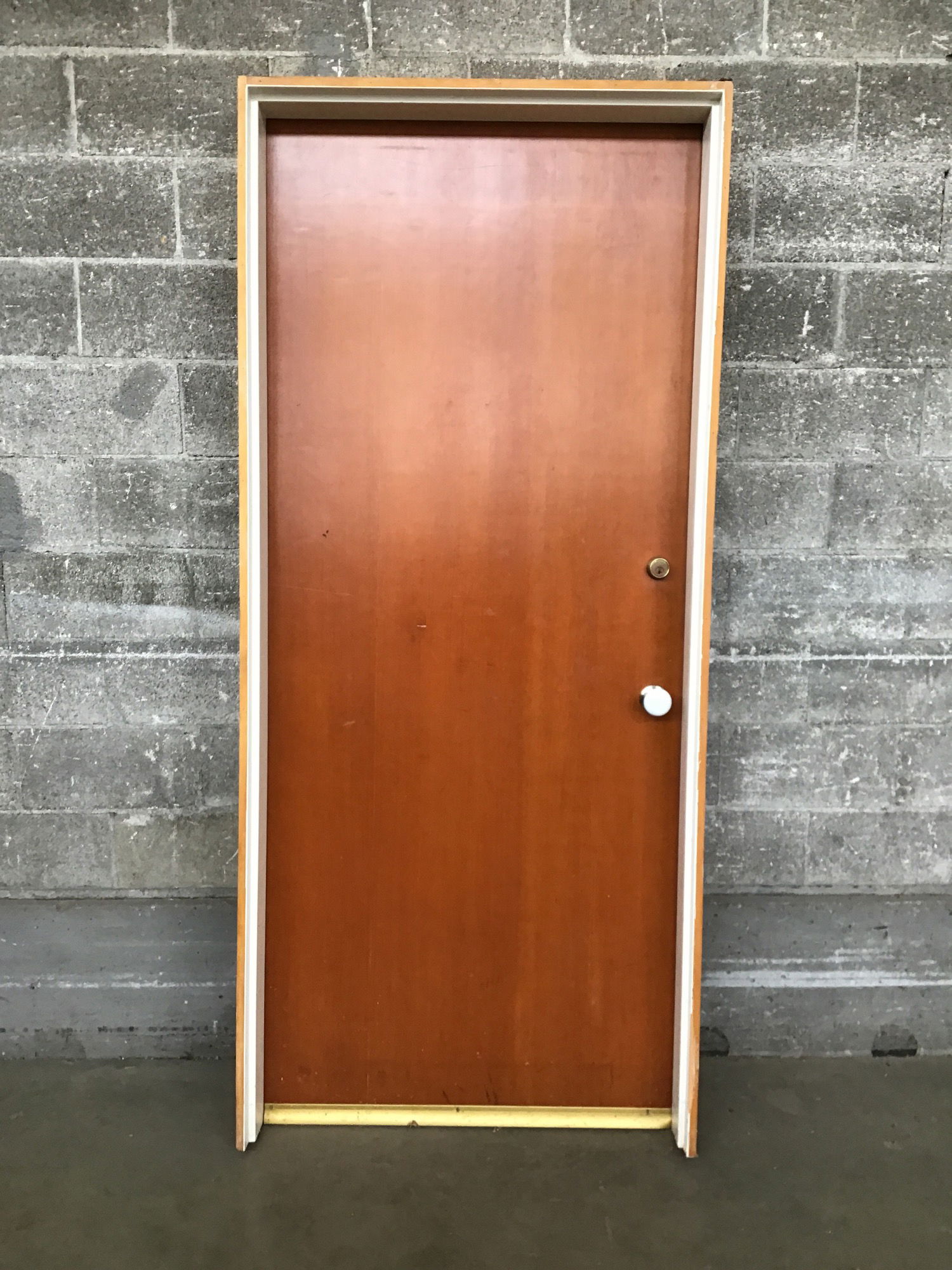 Exterior CVG fir flush-face door in a sturdy jamb. In great shape, has porcelain knobs and a deadbolt already installed.