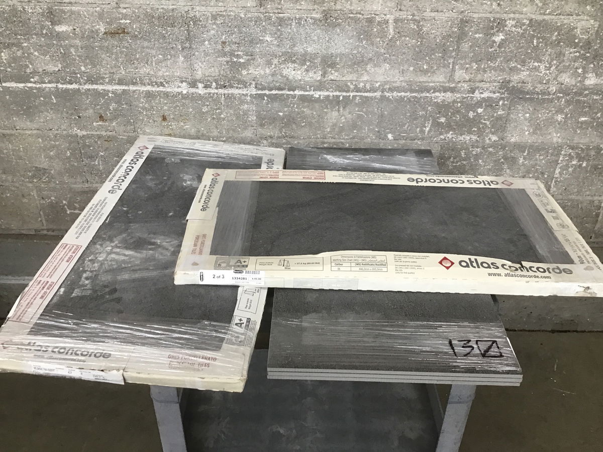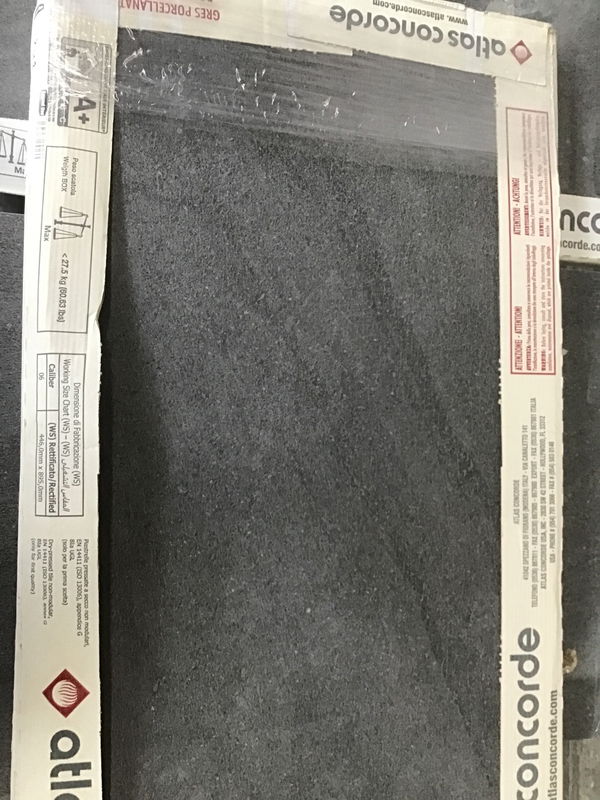 Approximately 35 square feet of gray porcelain wall tile over 9 tiles, they are LARGE. Sold as a lot.