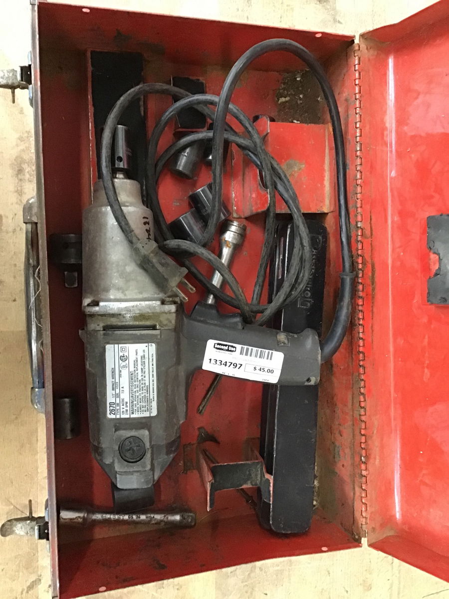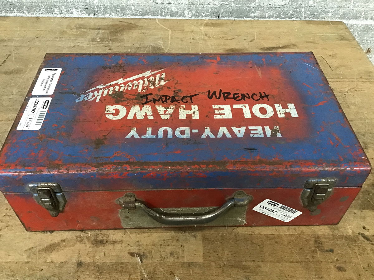 Older Black & Decker impact wrench, Model 2670, that comes in a deceptive Milwaukee carrying case with a handful of sockets. This appeared to be working fine when tested in house.