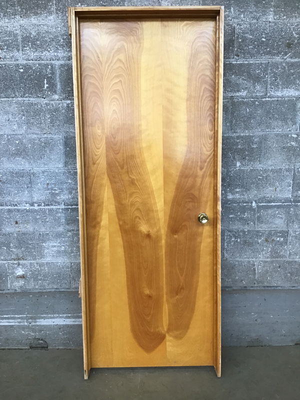 30" MCM Birch Hollow Core Door with a nice birch skin and brass knobs. There is a small split in the veneer, price reflects.