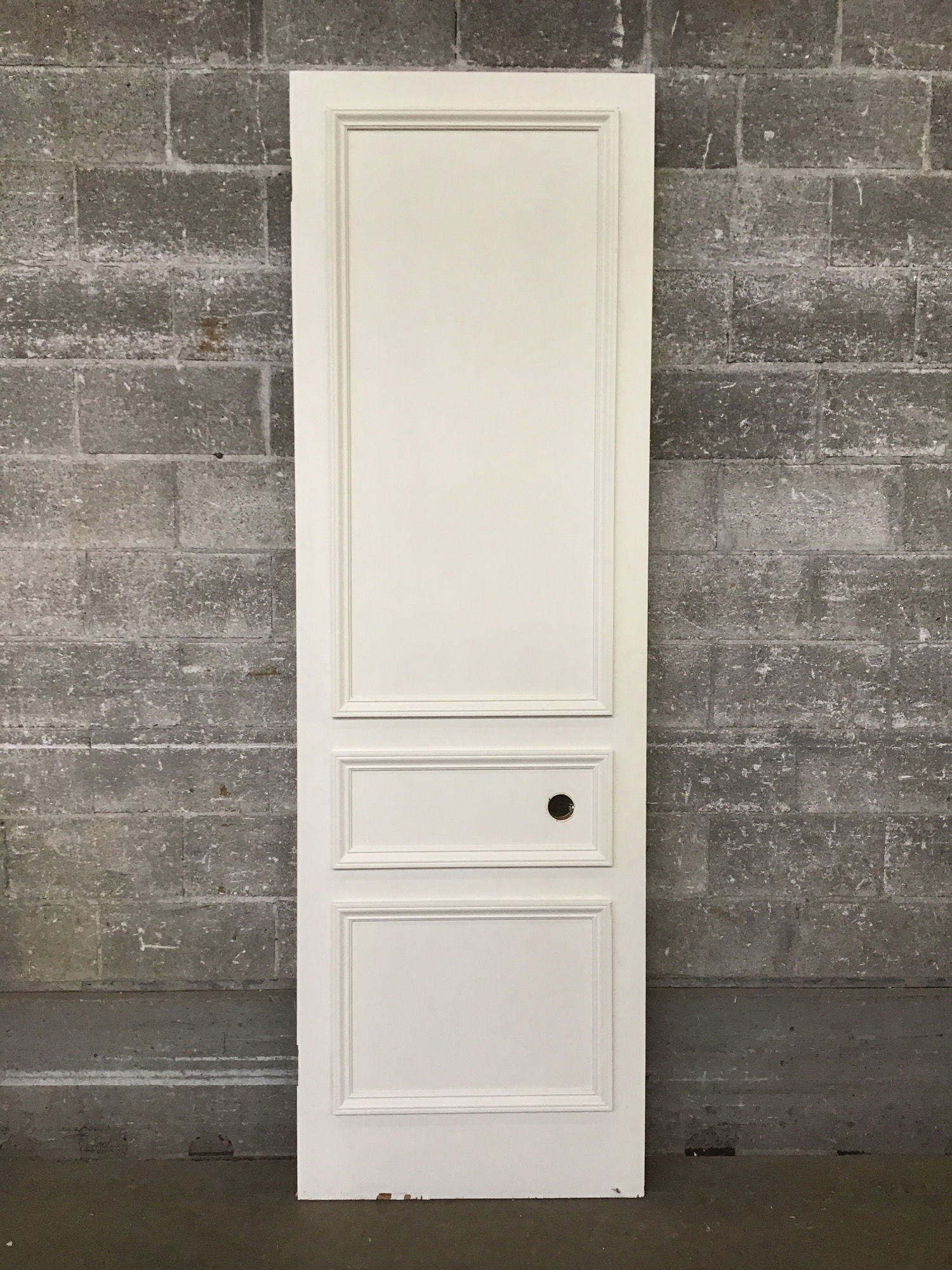This is an extra tall hollow core door with trim installed to make faux panels. Extra deep inset knob bore, which makes this quite the oddball door.